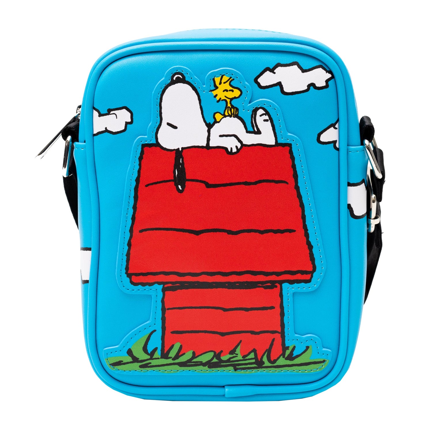 This Peanuts crossbody bag features Snoopy and Woodstock in their iconic "Secret of Life" dog house pose, perfect for fans of The Peanuts Store. Carry your essentials with style and show off your love for the gang.