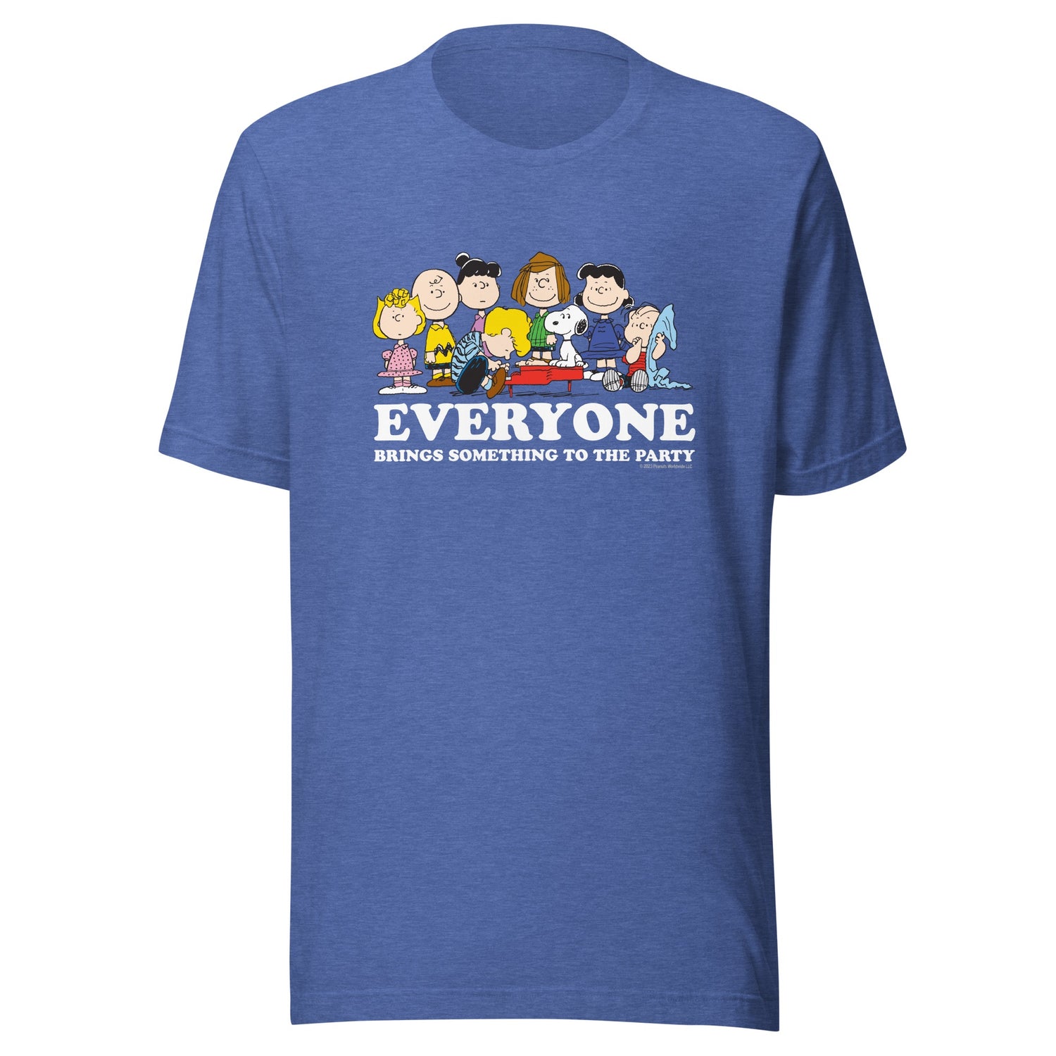Take your Peanuts fandom to the next level with this Everyone Brings Something To The Party Adult T-Shirt. Available in two colors, you can pick the right fit for any occasion.