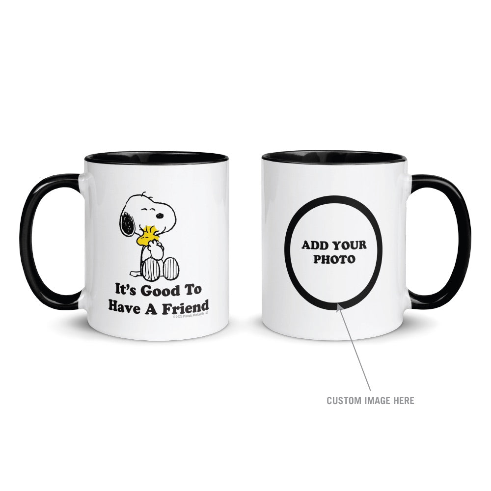 Start your day the Peanuts way! Enjoy a hot cup of coffee or tea in this It's Good To Have A Friend Personalized Two Tone Mug.