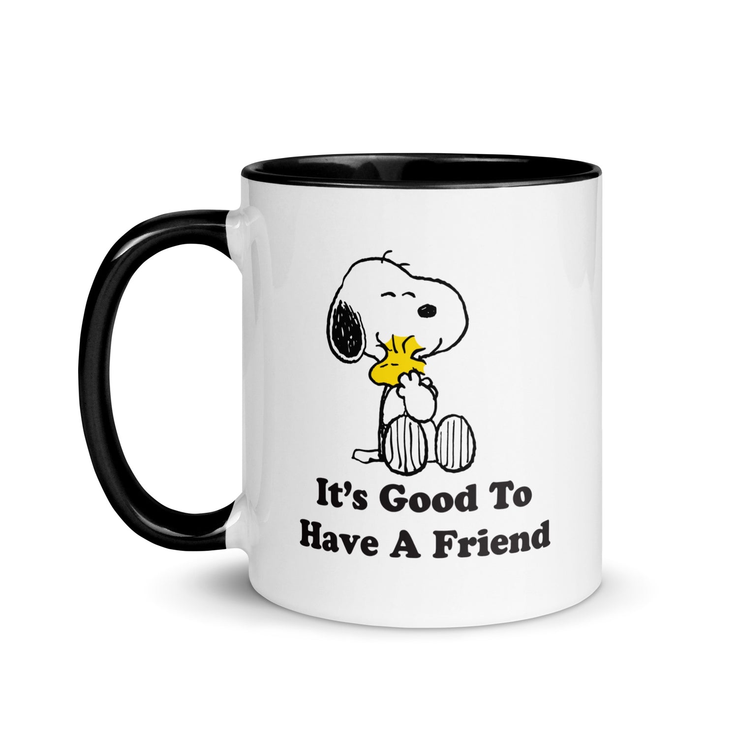 Start your day the Peanuts way! Enjoy a hot cup of coffee or tea in this It's Good To Have A Friend Two Tone Mug.