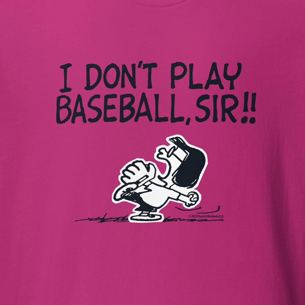 Soft and light, the Marcie I Don't Play Baseball Adult T-Shirt is the perfect addition to any Peanuts fan collection.