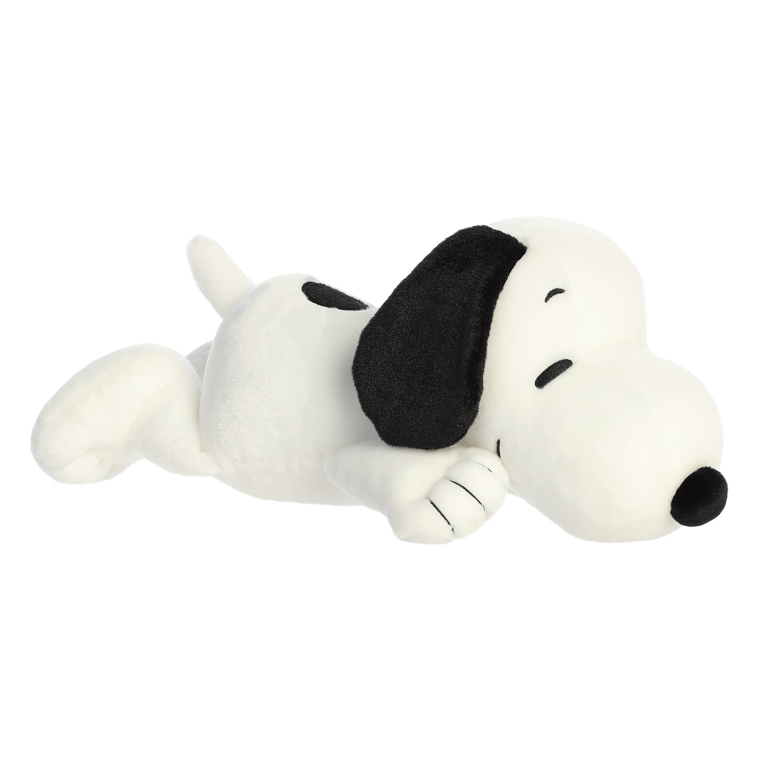 Discover Snuggle Snoopy from the Peanuts Plush Collection by Aurora, where iconic charm meets cuddly design. This plush embodies Snoopy's serene and loving nature in a form that begs to be hugged. With its soft, pliable body and expressive details, Snuggle Snoopy is a wonderful addition to any Peanuts collection and a delightful gift for anyone needing a bit of comfort and joy. His laid-back pose makes him a perfect companion for relaxation and sweet dreams.