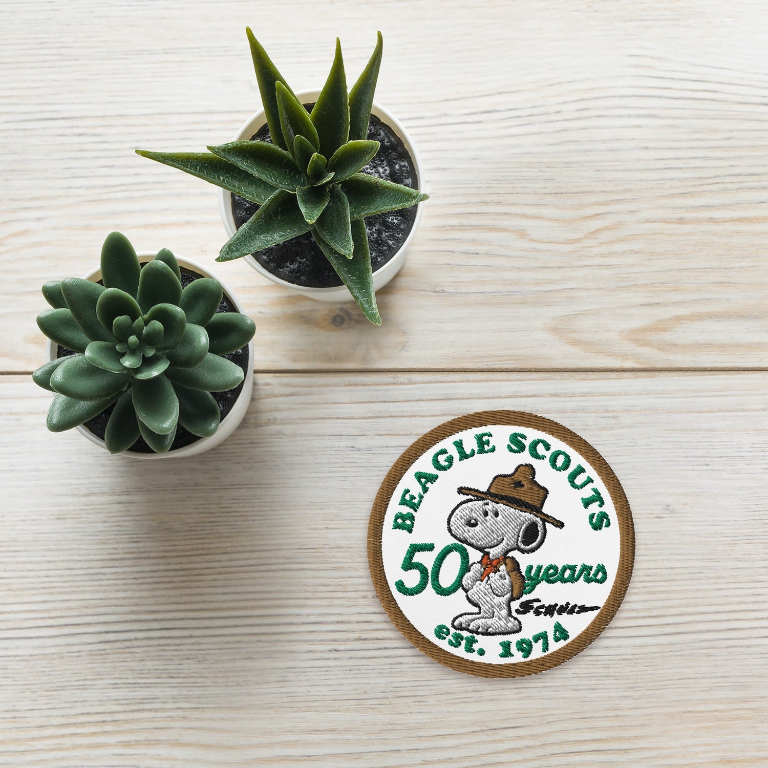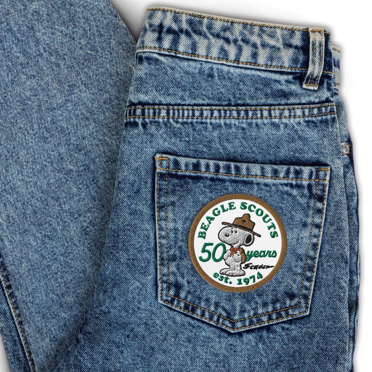 Commemorate 50 years of Peanuts Beagle Scouts with our exclusive Embroidered Patch! Crafted with precision and nostalgia, this badge celebrates the beloved characters in vibrant detail. Perfect for enthusiasts, collectors, or anyone who cherishes the timeless charm of Snoopy and the gang.