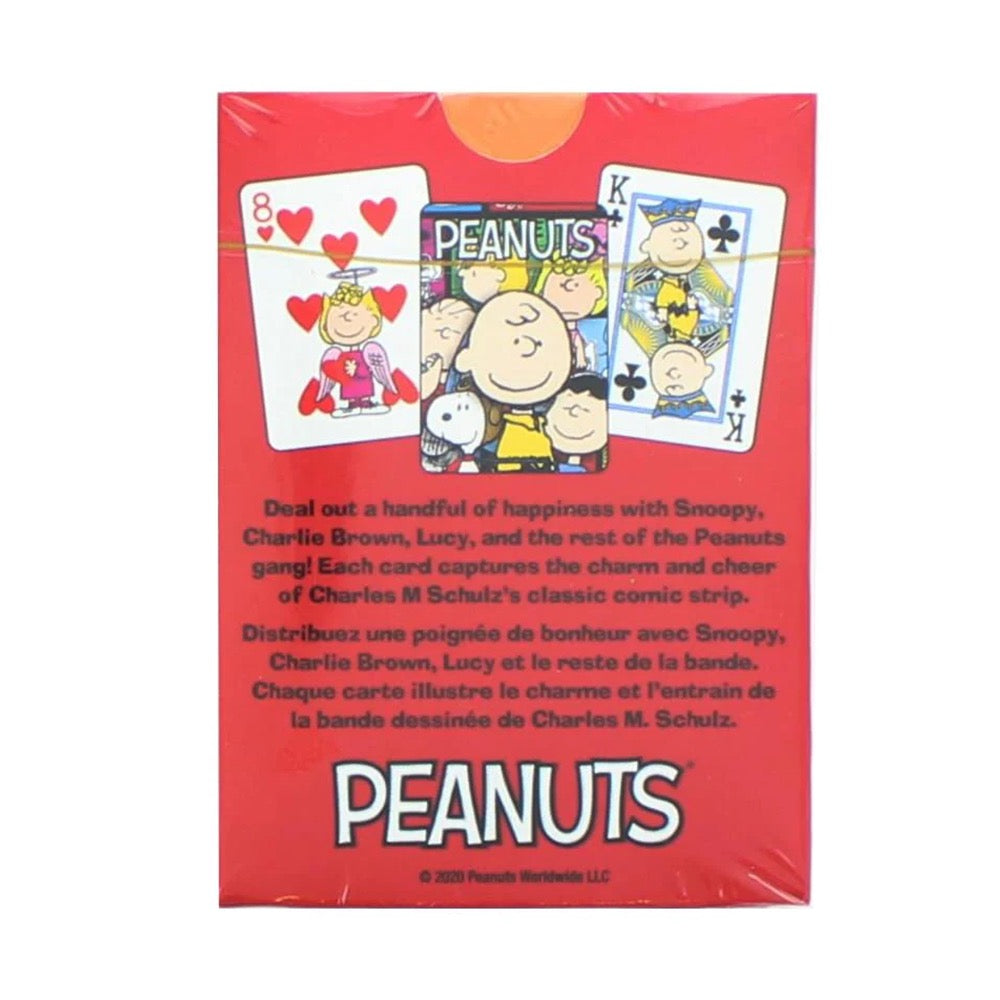 - This Peanuts deck of playing cards includes 54 cards (52 playing cards and 2 jokers). Every single playing card features its own distinct Peanuts Cast themed design and art. No two cards are alike