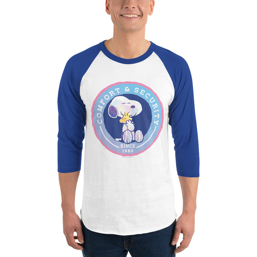 Celebrate 75 years of the timeless charm of Peanuts with the Peanuts Comfort and Security Adult Raglan T-Shirt. Designed for fans of the iconic comic strip, this stylish raglan tee combines nostalgia with everyday comfort. Featuring a relaxed fit, contrasting sleeves, and a durable crew neckline, this shirt is perfect for casual outings, lounging at home, or showing off your love for Snoopy and the gang.