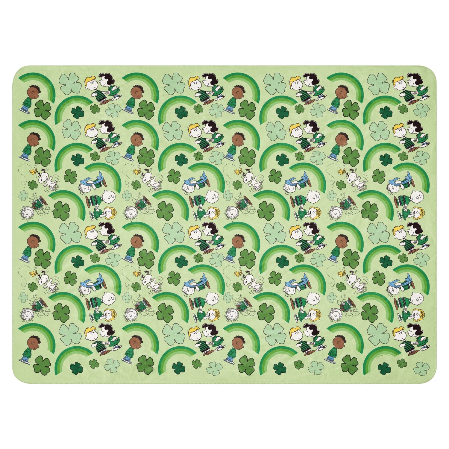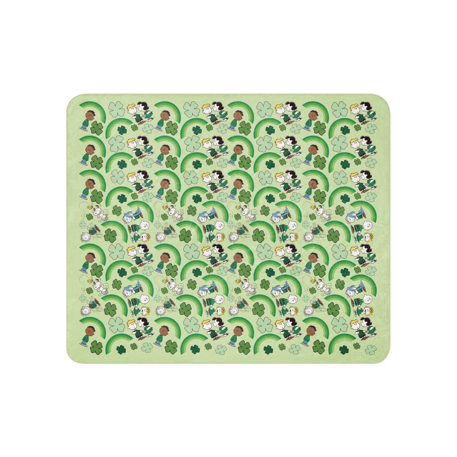 This blanket is softer than a pile of clovers and cozier than Linus's security blanket. One side is like a cloud of Sherpa goodness, while the other showcases the gang all dressed up for St. Paddy's Day.