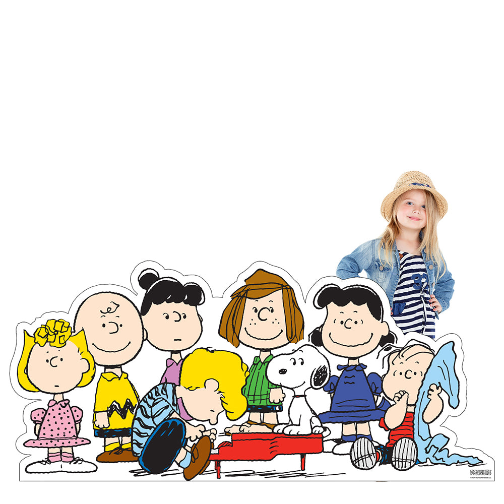 Relive the magic of Charles M. Schulz's Peanuts with our enchanting Peanuts Gang Piano Scene Standee. This life-sized cutout captures the heartwarming moment when Schroeder plays the piano while the rest of the gang gathers around, creating a timeless and nostalgic atmosphere.