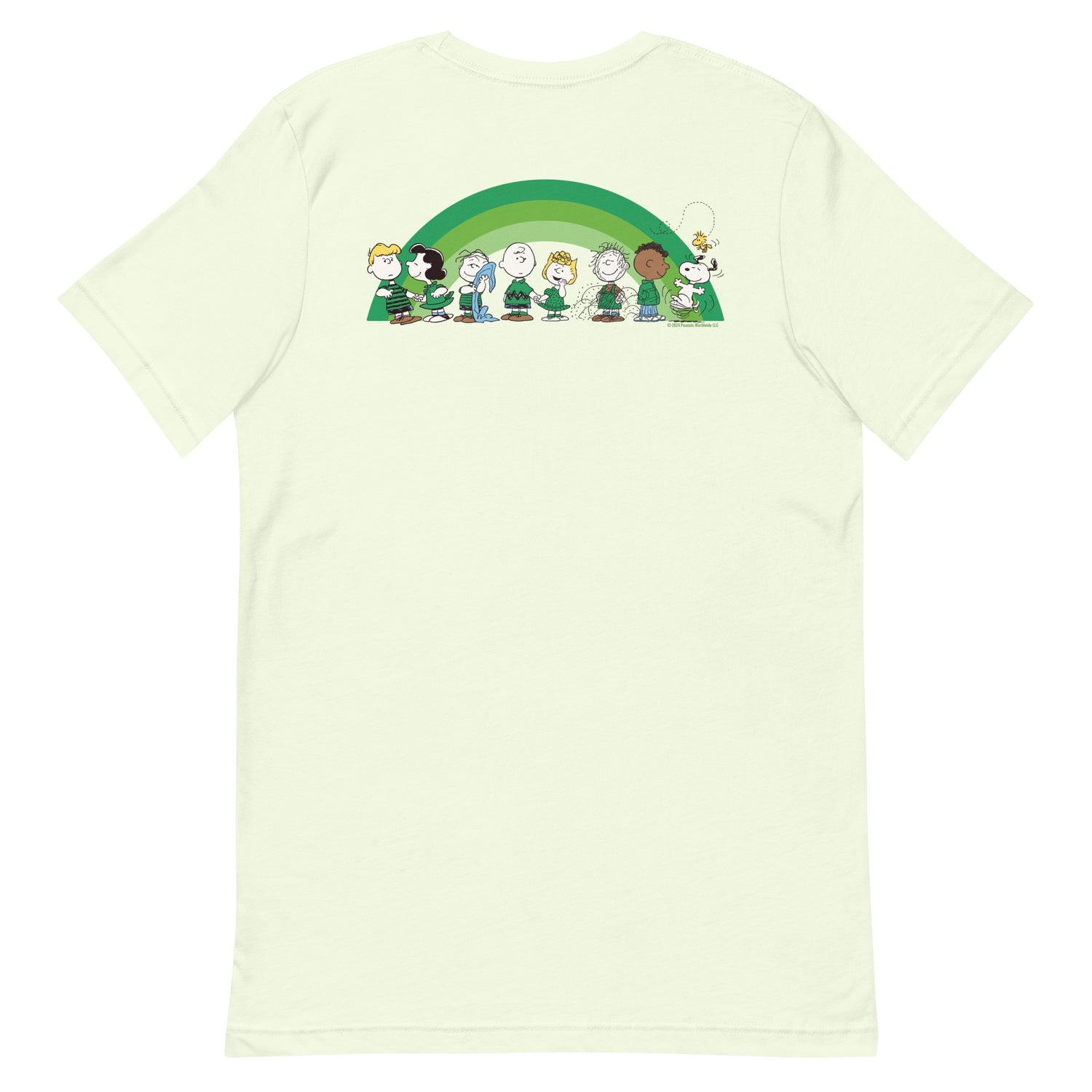 This unisex tee, crafted for comfort and charm, is like a St. Paddy's Day hug from the Peanuts crew. Soft, breathable fabric meets a design that's as cheerful as a leprechaun's grin. Snoopy's got his dance moves ready, and Charlie Brown's proudly showing off his lucky shirt – it's a parade of Peanuts joy!