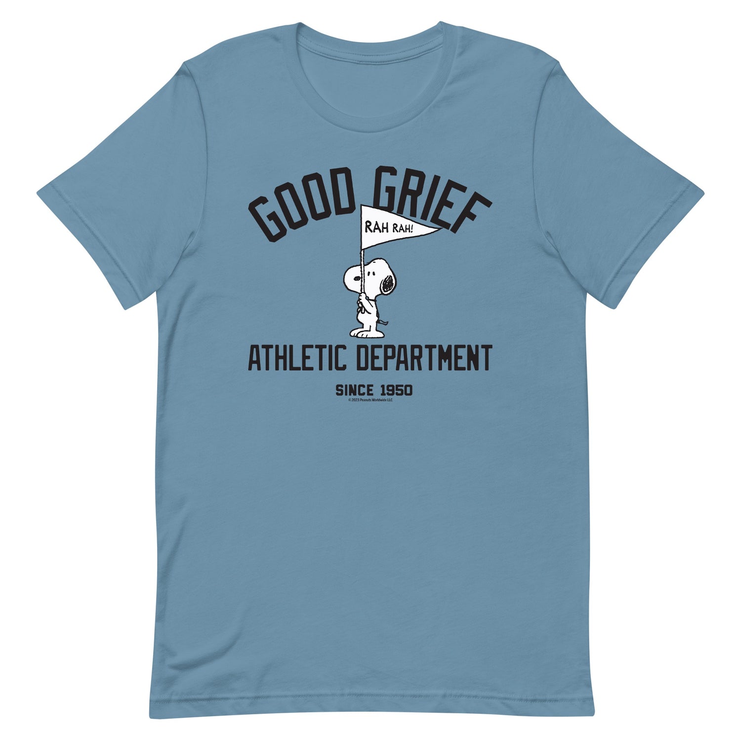 Pick between 4 characters to make your own customized Peanuts Good Grief Athletic Department Customized Adult T-Shirt.