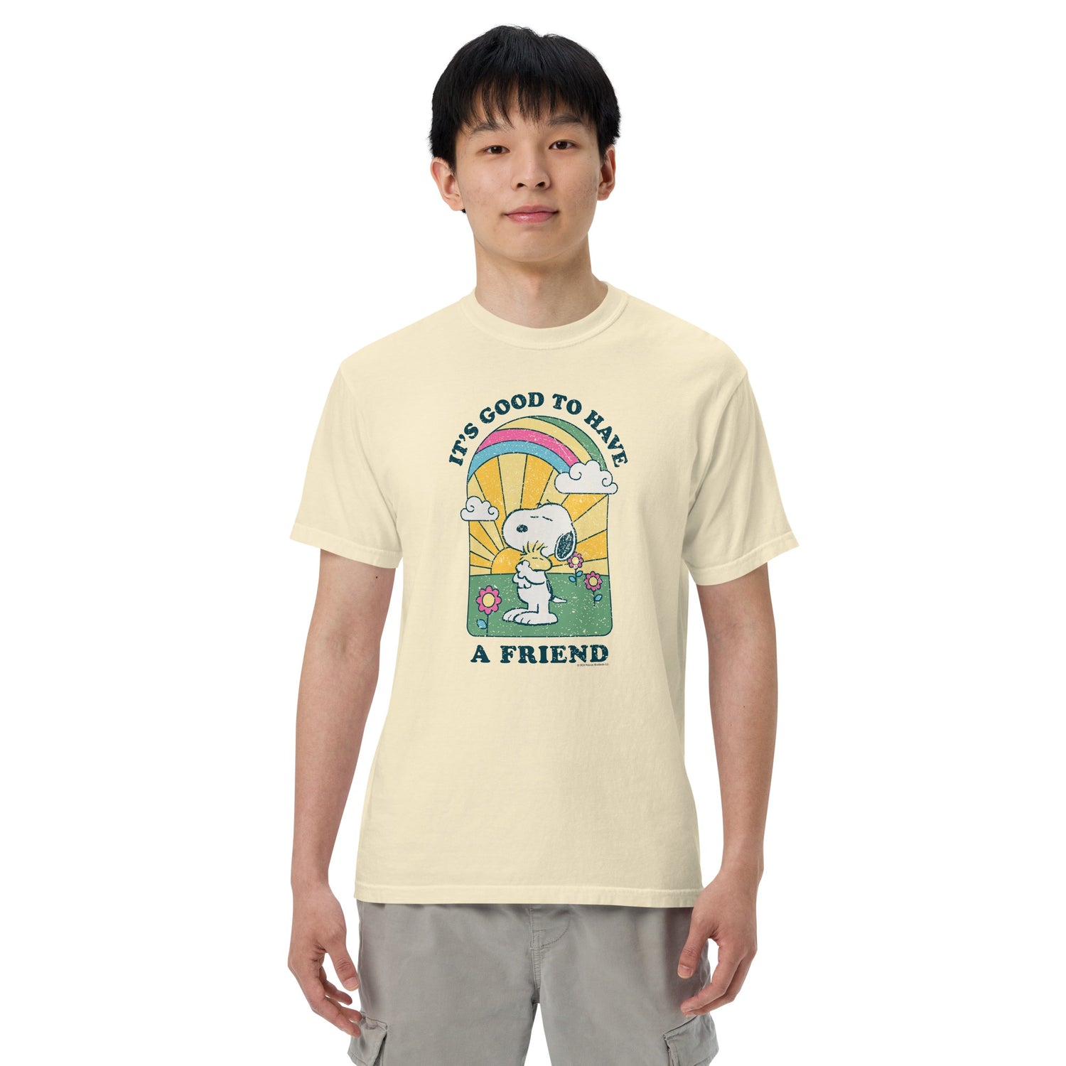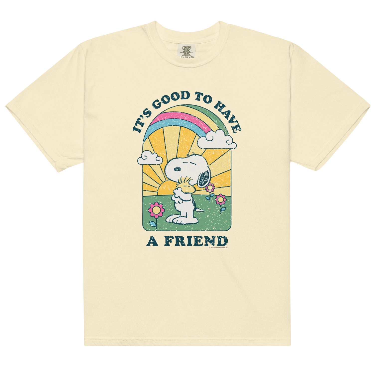 Introducing the Peanuts Groovy Comfort Colors T-Shirt – a vibrant and nostalgic addition to your wardrobe! Crafted with the signature comfort of the Comfort Colors brand, embrace the spirit of the '60s with Snoopy and Woodstock in a psychedelic and groovy design.