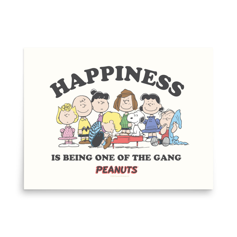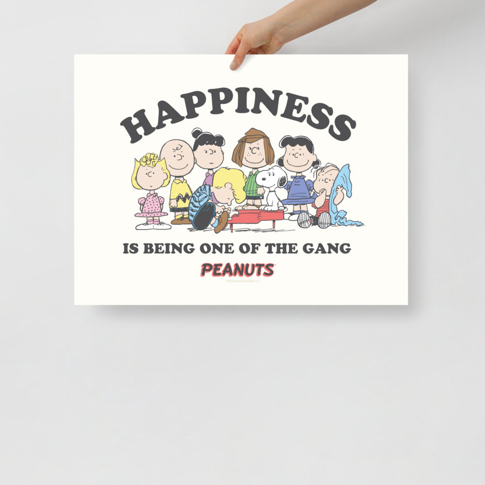 Celebrate the joy of friendship with the "Happiness Is Being One of the Gang" Premium Poster. This vibrant and high-quality print captures the beloved Peanuts characters in their most charming and cheerful moments. Perfect for fans of Charles Schulz's timeless comic strip, this poster features iconic characters like Charlie Brown, Snoopy, and the gang, showcasing their playful and endearing nature.