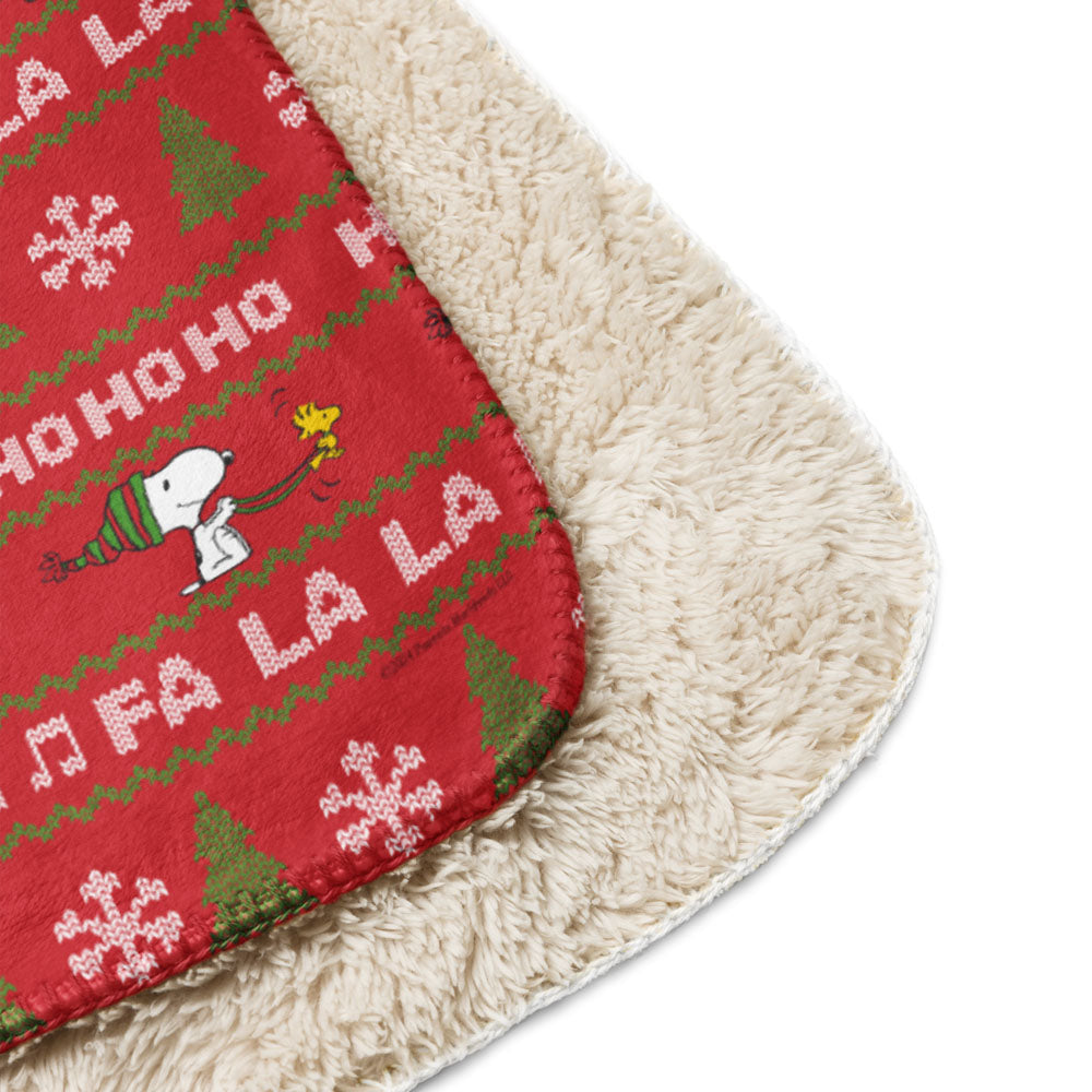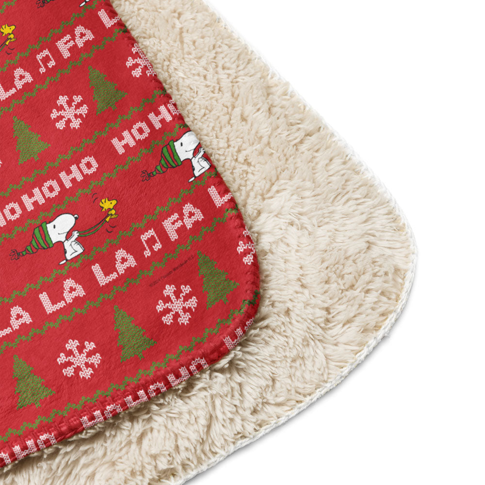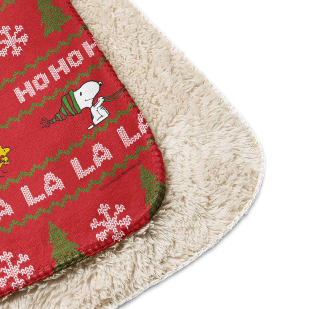 Wrap yourself in holiday cheer with the Peanuts HoHoHo Sherpa Blanket! Perfect for cozy nights, this soft and plush blanket features a festive design with Snoopy and friends bringing holiday joy to any room.