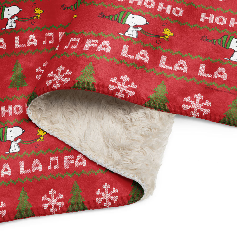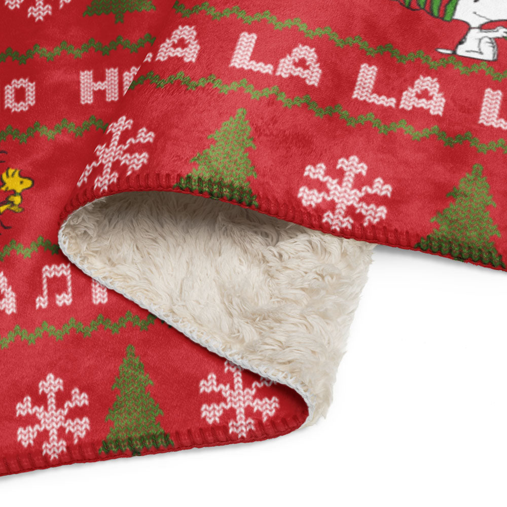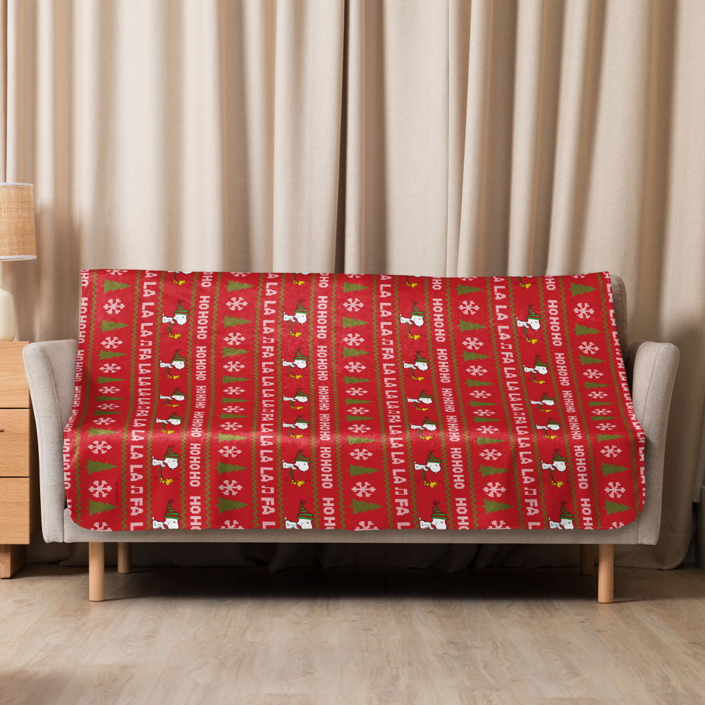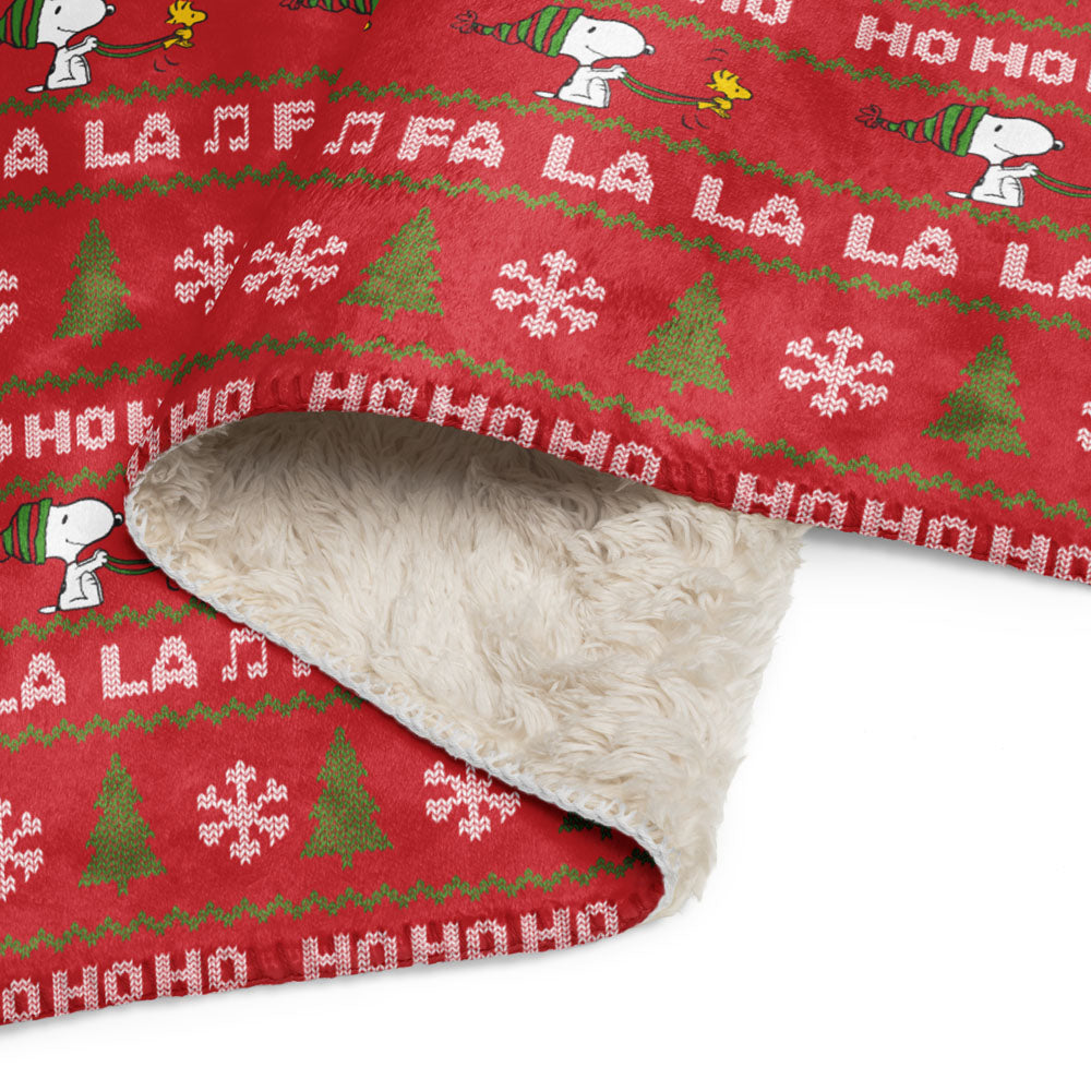 Wrap yourself in holiday cheer with the Peanuts HoHoHo Sherpa Blanket! Perfect for cozy nights, this soft and plush blanket features a festive design with Snoopy and friends bringing holiday joy to any room.