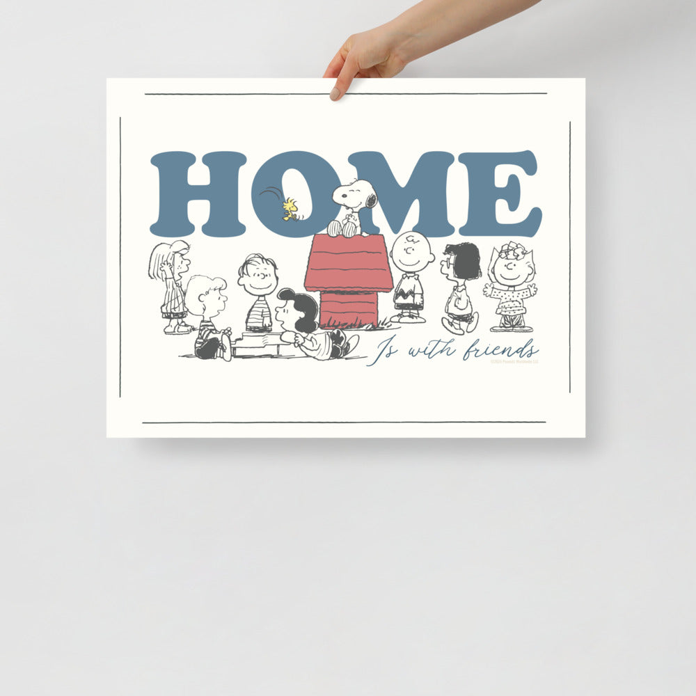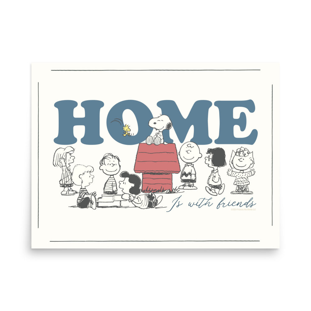 Transform your space with the heartwarming charm of the Peanuts gang! Our "Home Is with Friends" Premium Poster captures the essence of friendship and joy that defines the beloved comic strip. Featuring detailed artwork, this poster showcases Charlie Brown, Snoopy, and their friends in a touching depiction of togetherness.