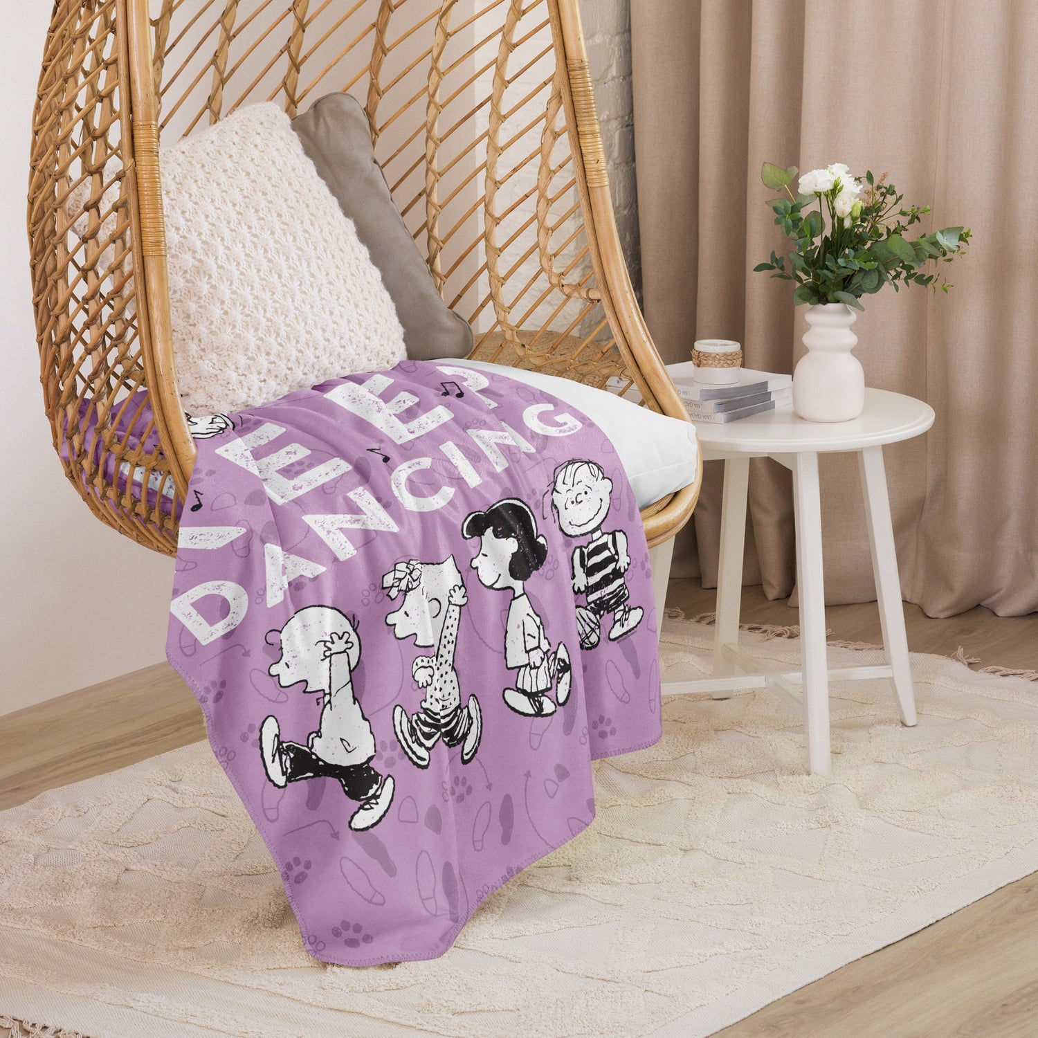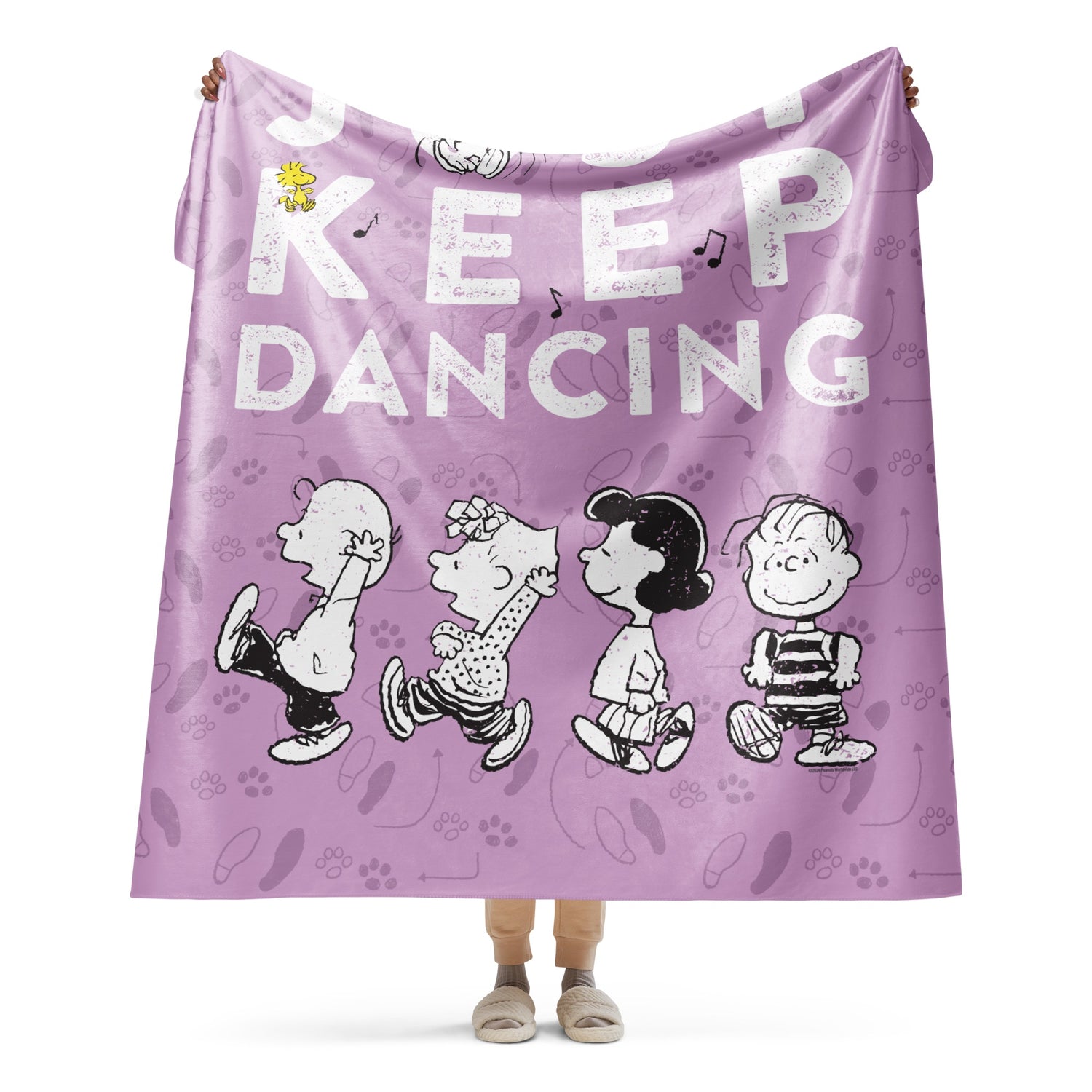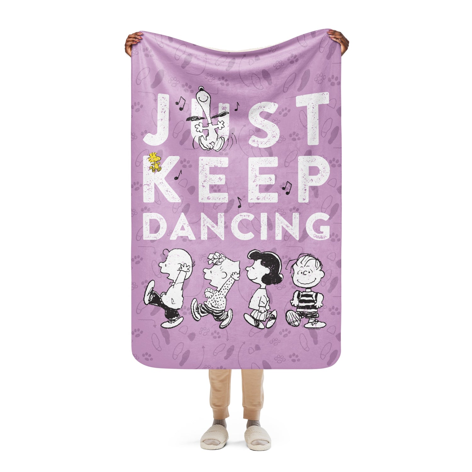 Wrap yourself in the ultimate comfort with the Peanuts Just Keep Dancing Sherpa Blanket. Perfect for fans of the beloved Peanuts gang, this sherpa blanket features a delightful design of Snoopy dancing joyfully.
