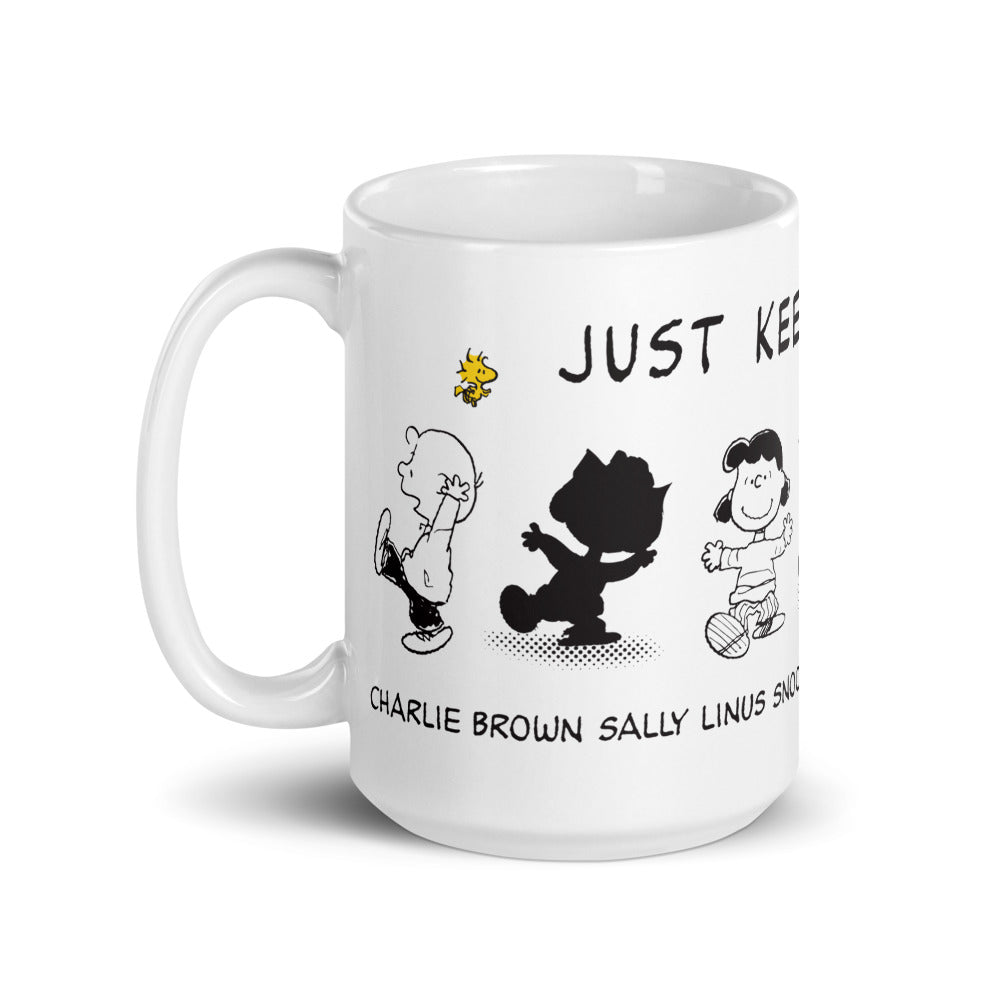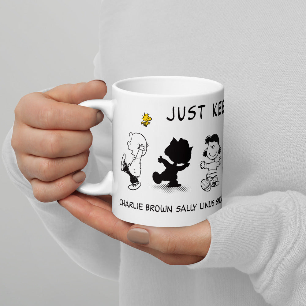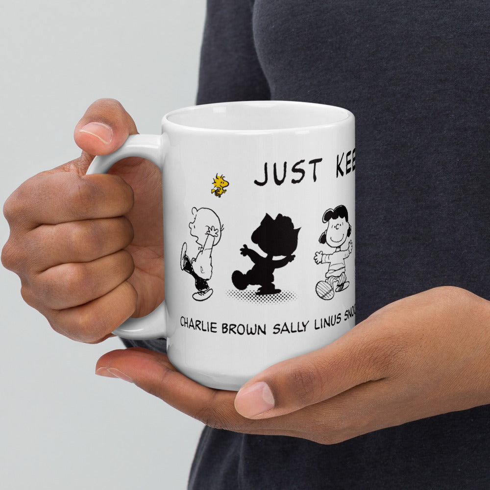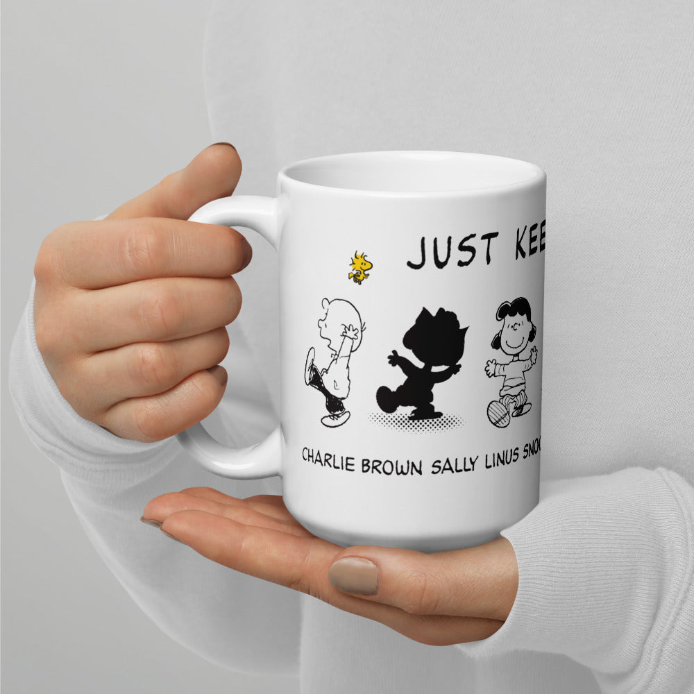 Start your day with a smile and a dance! The Peanuts Just Keep Dancing White Mug features the beloved Snoopy and friends showcasing their best dance moves, making it the perfect companion for your morning coffee or tea.