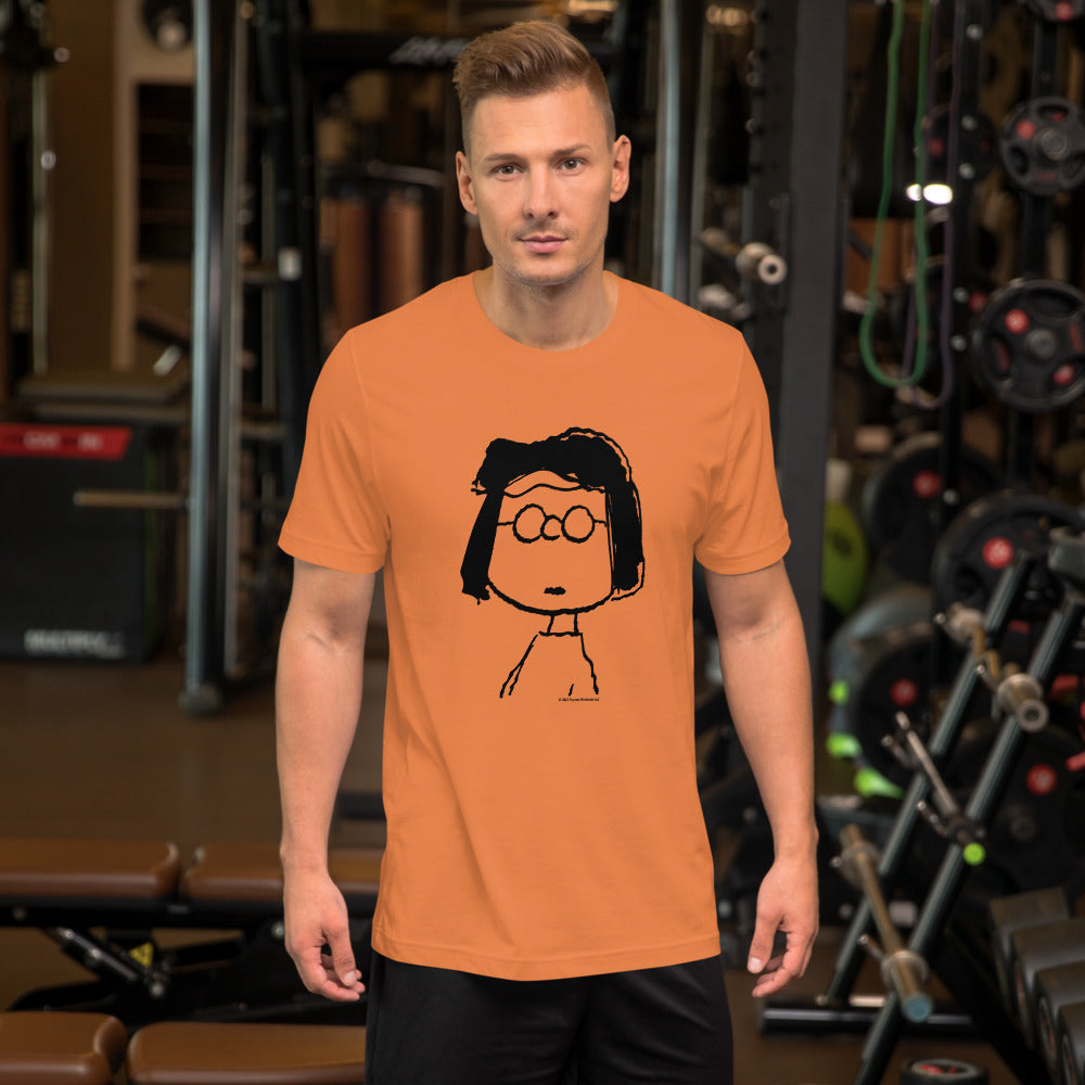 Elevate your casual wardrobe with the Peanuts Marcie Unisex T-Shirt, a must-have for fans of the iconic comic strip. This stylish and comfortable tee features Marcie, one of the beloved characters from the Peanuts gang, known for her intelligence and unique personality.