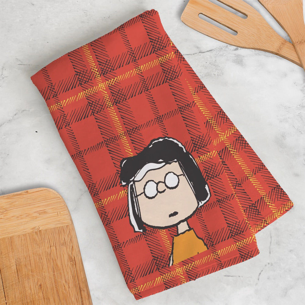 Elevate your kitchen decor with the charming Peanuts Marcie Kitchen Towel, a delightful tribute to the beloved character from Charles Schulz's iconic comic strip. Crafted from 100% cotton, this absorbent and durable tea towel is perfect for drying dishes, wiping hands, or adding a touch of whimsy to your kitchen.