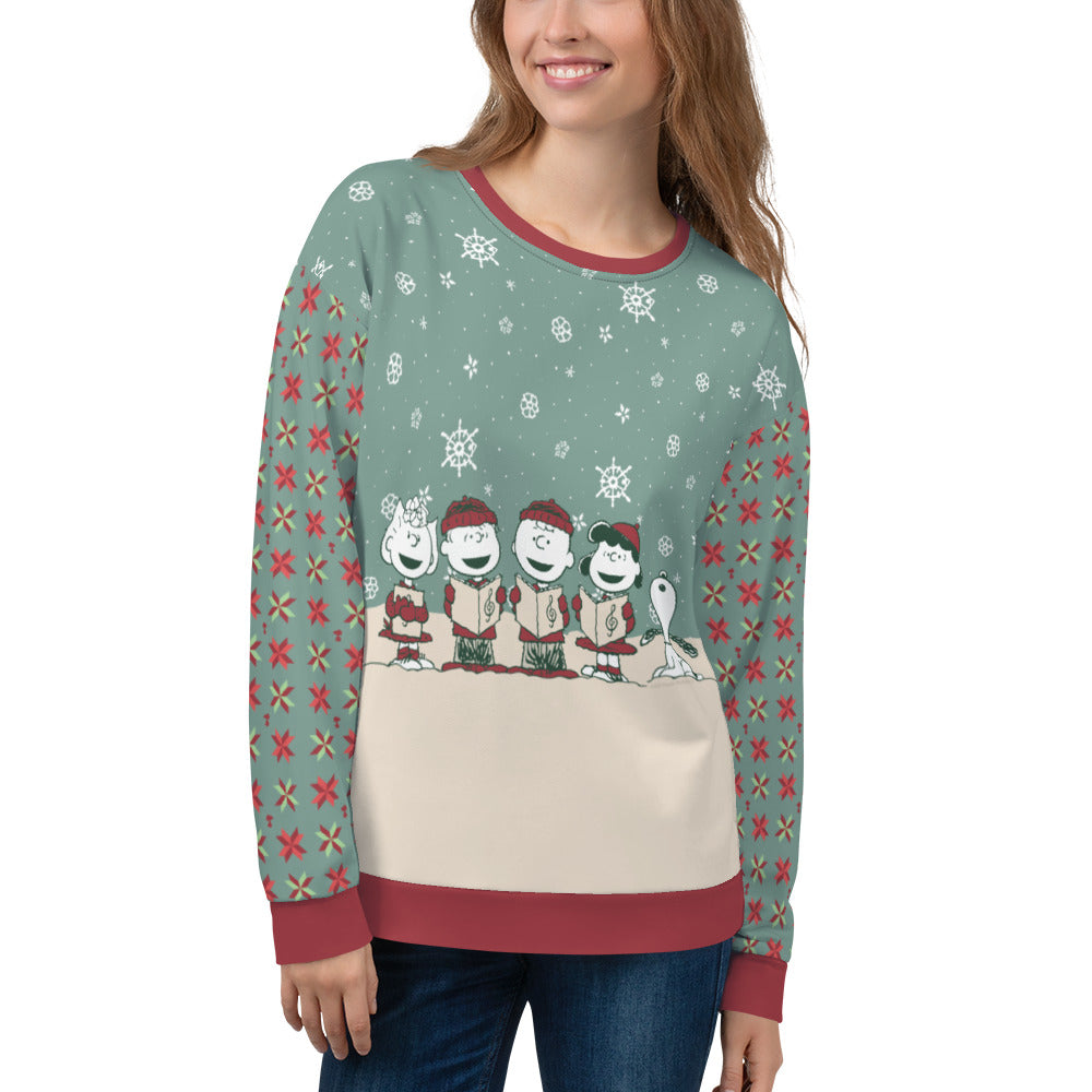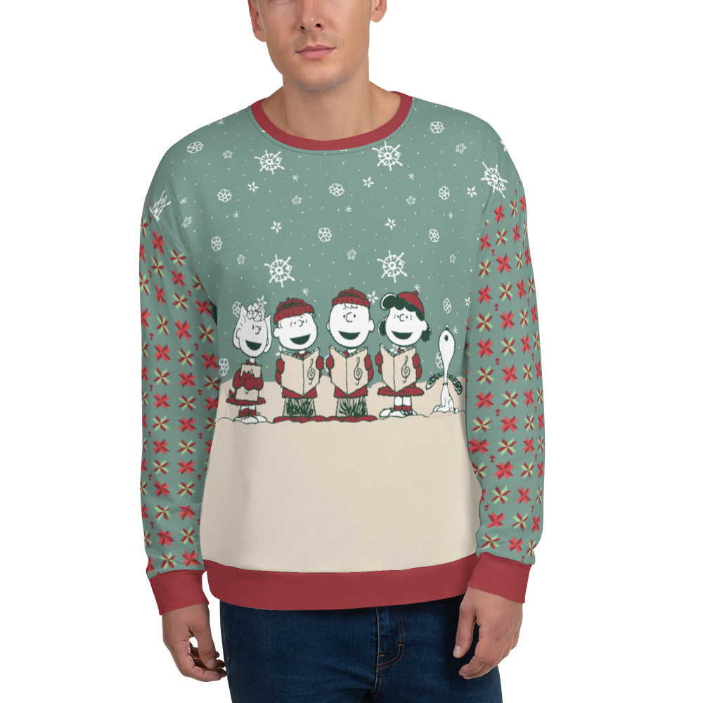 Celebrate the festive season with a touch of classic charm in the Peanuts Merry Gang Unisex Crewneck. This cozy crewneck sweatshirt features the beloved Peanuts characters, including Snoopy, Charlie Brown, and friends, all decked out for the holidays.