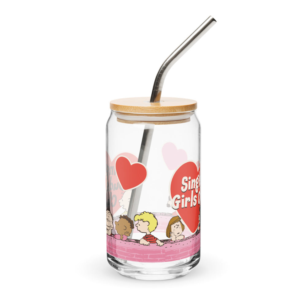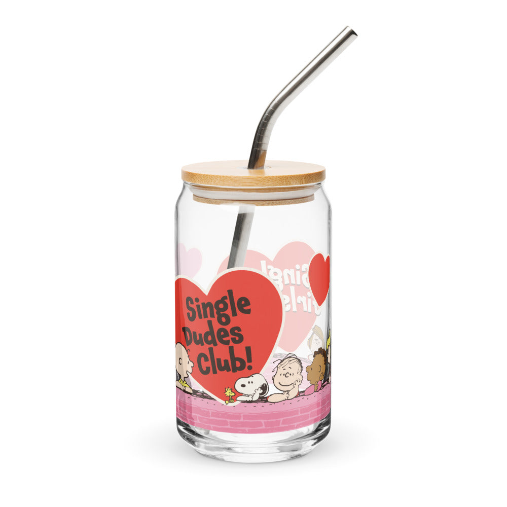 Peanuts Single Dudes and Girls Club Can Shaped Glass