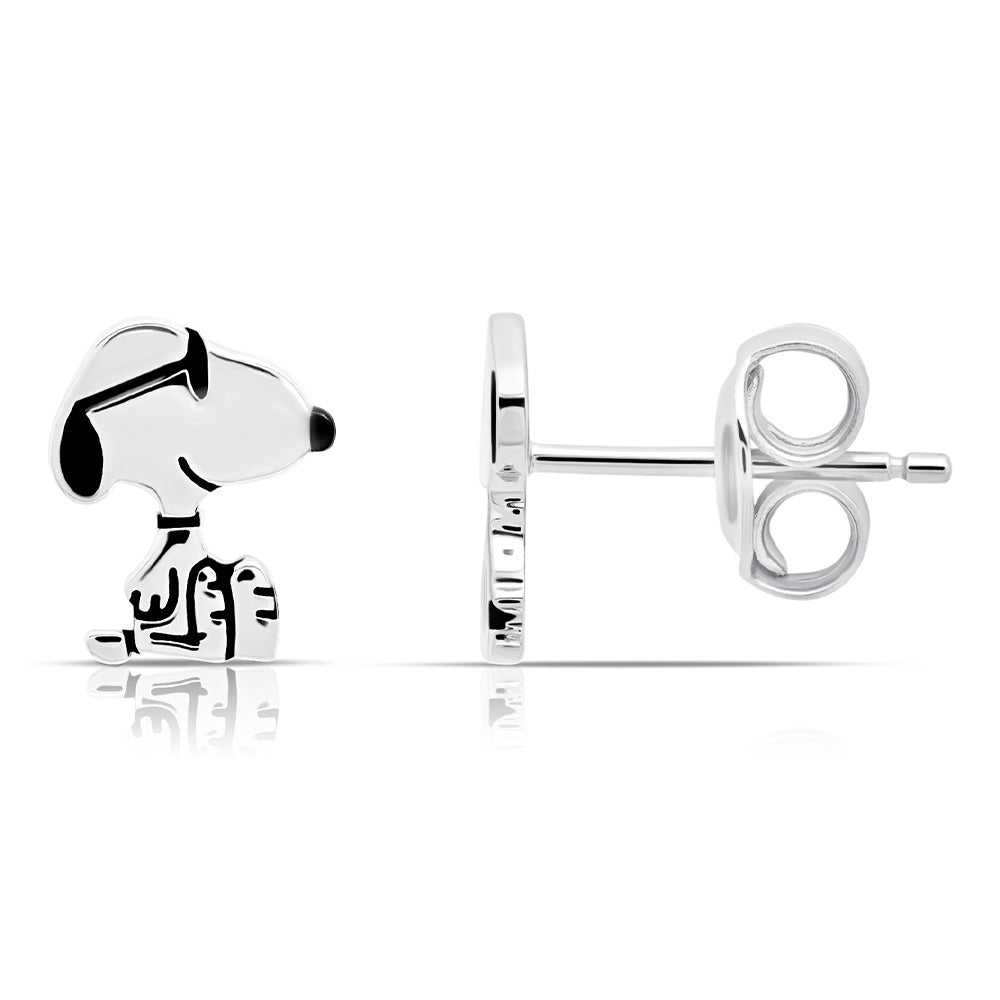 Peanuts Snoopy Sterling Silver Stud Earrings Finished in Pure Platinum