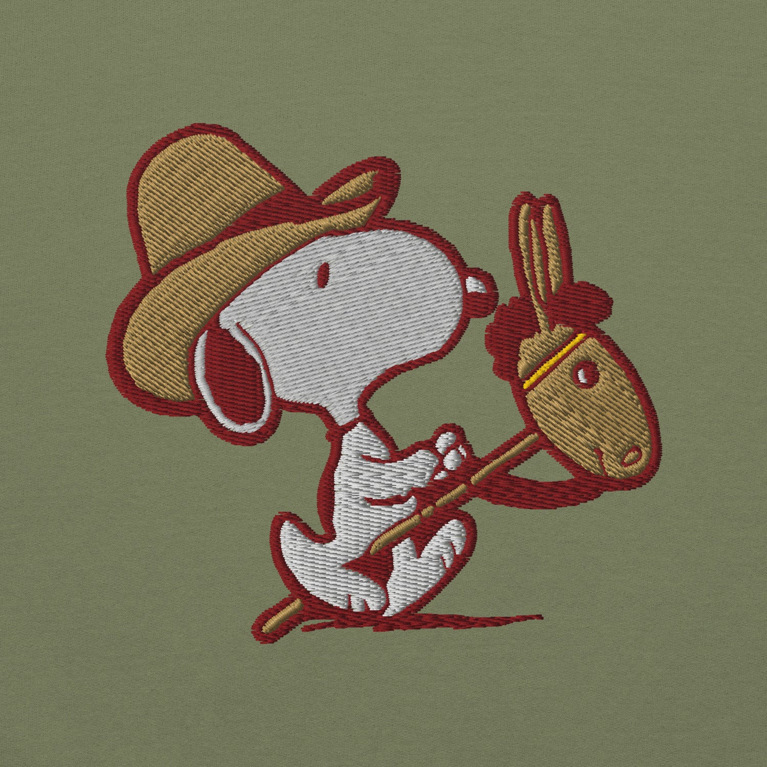 Discover timeless charm with the Peanuts Snoopy Cowboy Embroidered Crewneck, a tribute to classic Americana and beloved cartoon nostalgia. Crafted with precision, this crewneck features an intricately embroidered Snoopy in his iconic cowboy attire, adding a playful yet sophisticated touch to your wardrobe.