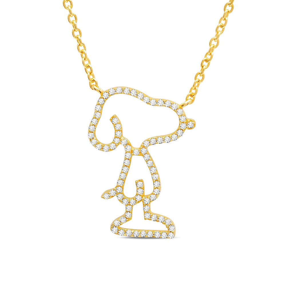 Peanuts Snoopy Pave Silhouette Sterling Silver Necklace Finished in 18kt Yellow Gold