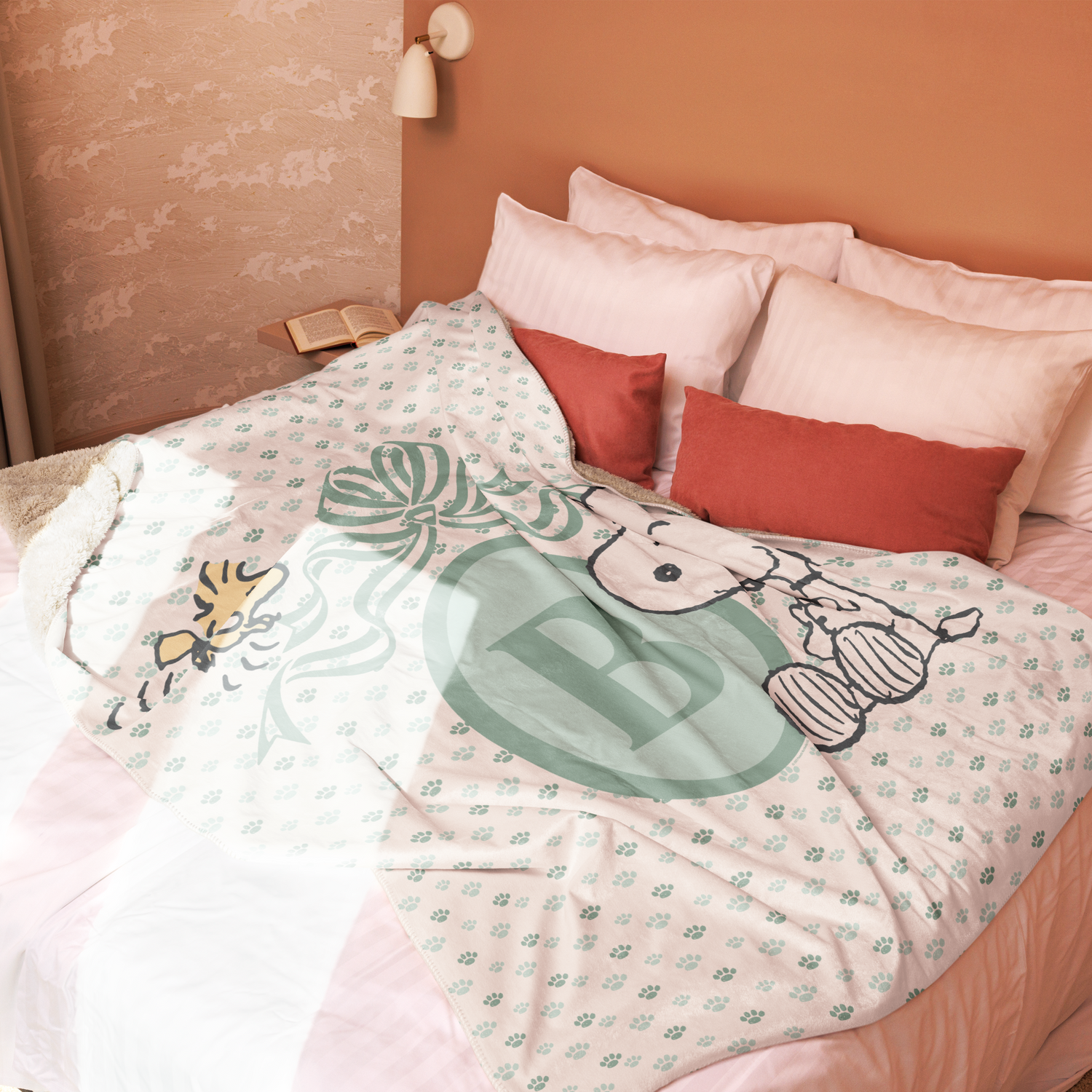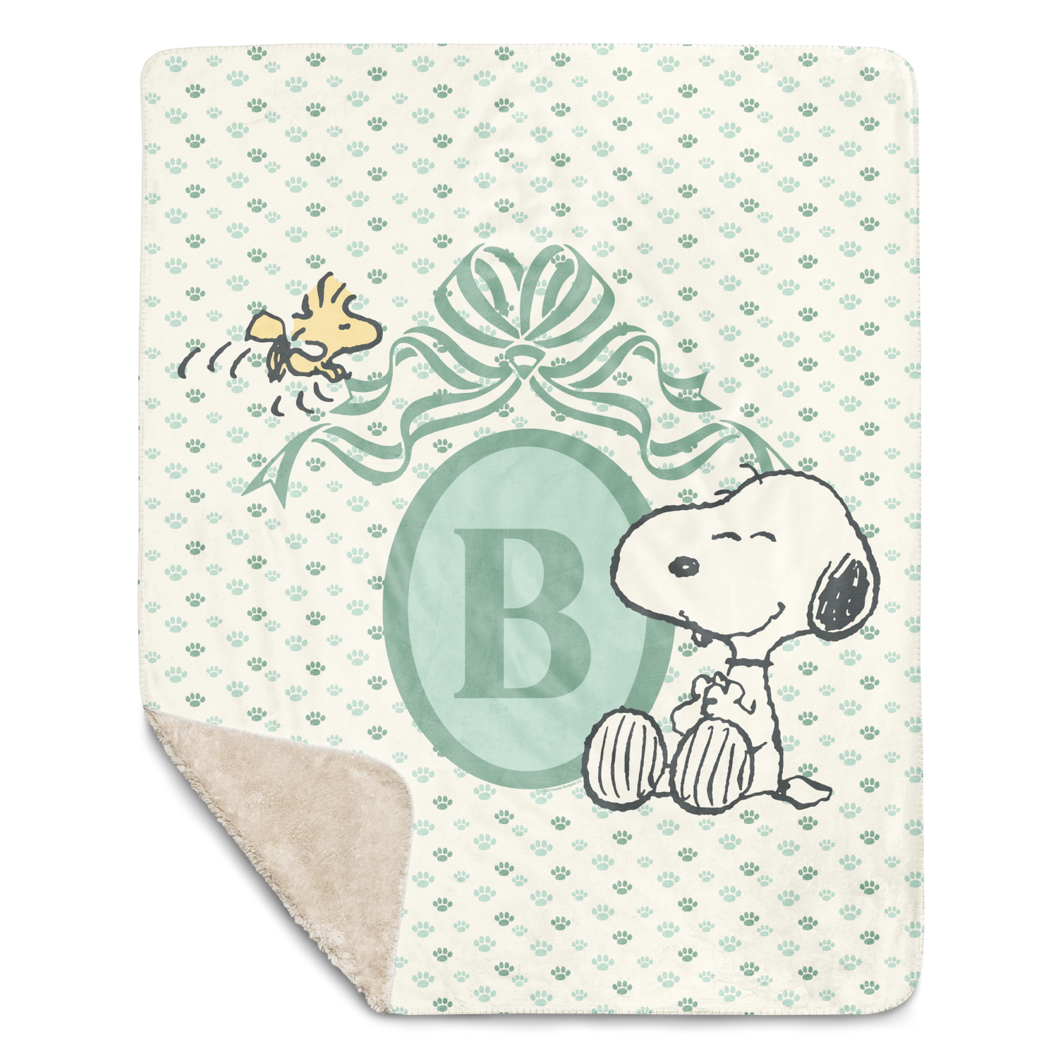 Wrap them in warmth and Peanuts charm with this cozy Initials Personalized Sherpa Blanket. Featuring a playful pattern of Snoopy and Woodstock scattered around a large, personalized initial, this super-soft sherpa blanket is perfect for snuggling on the couch, naptime, or adding a touch of Peanuts magic to any room.