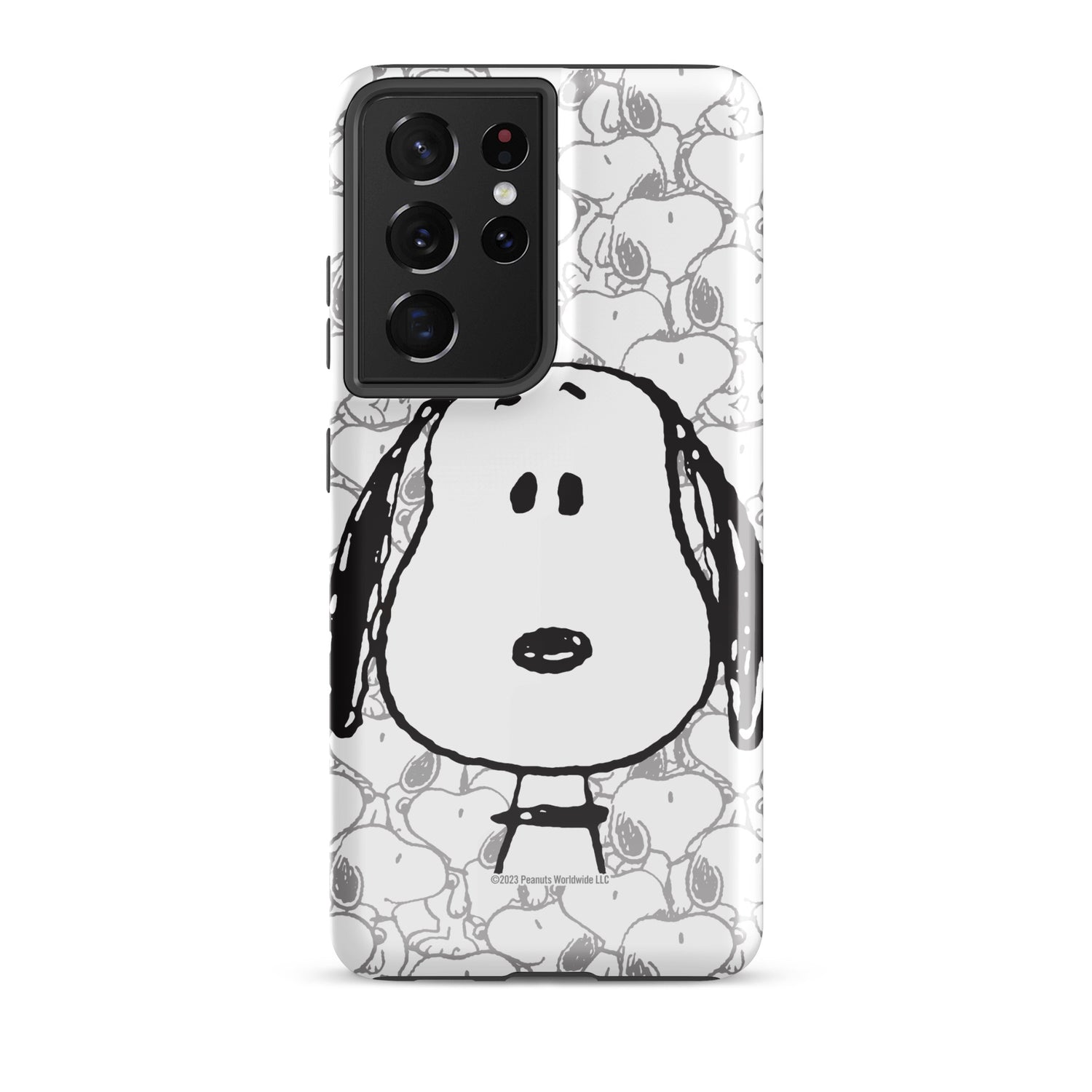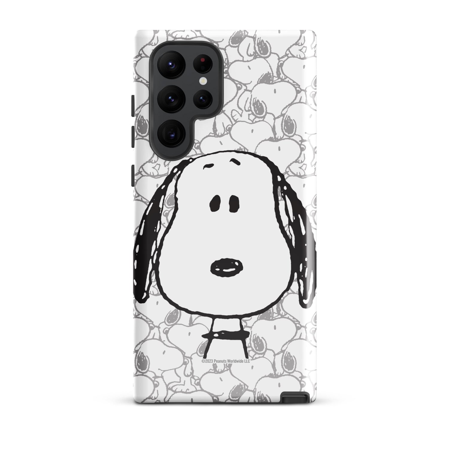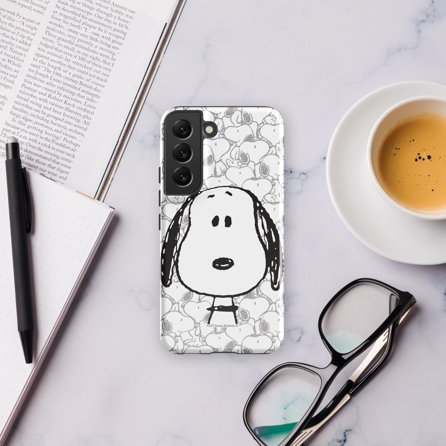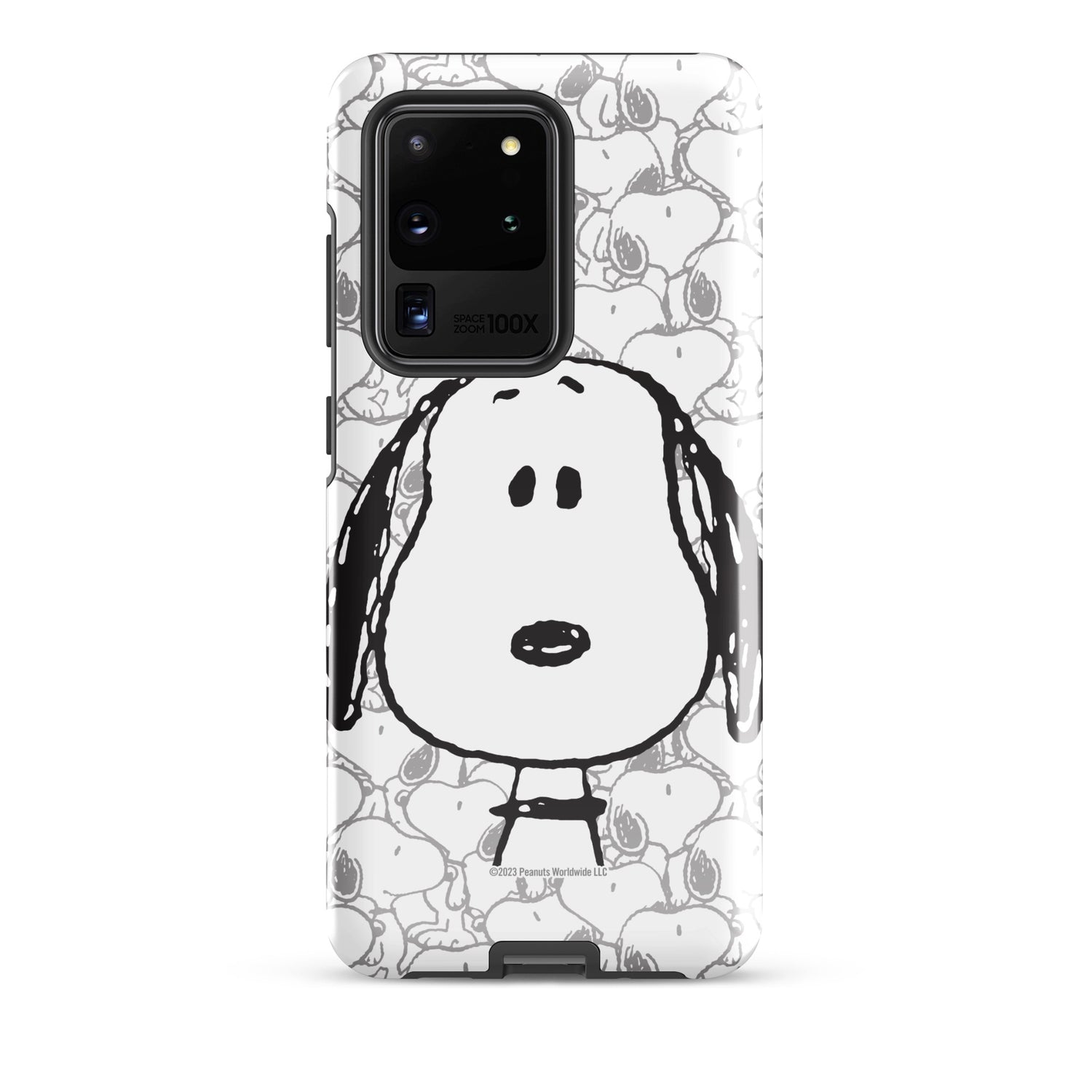 Introducing the Snoopy Samsung Tough Case – a whimsical tribute to everyone's favorite beagle, capturing the playful spirit and heartwarming moments of Snoopy in a delightful collage.