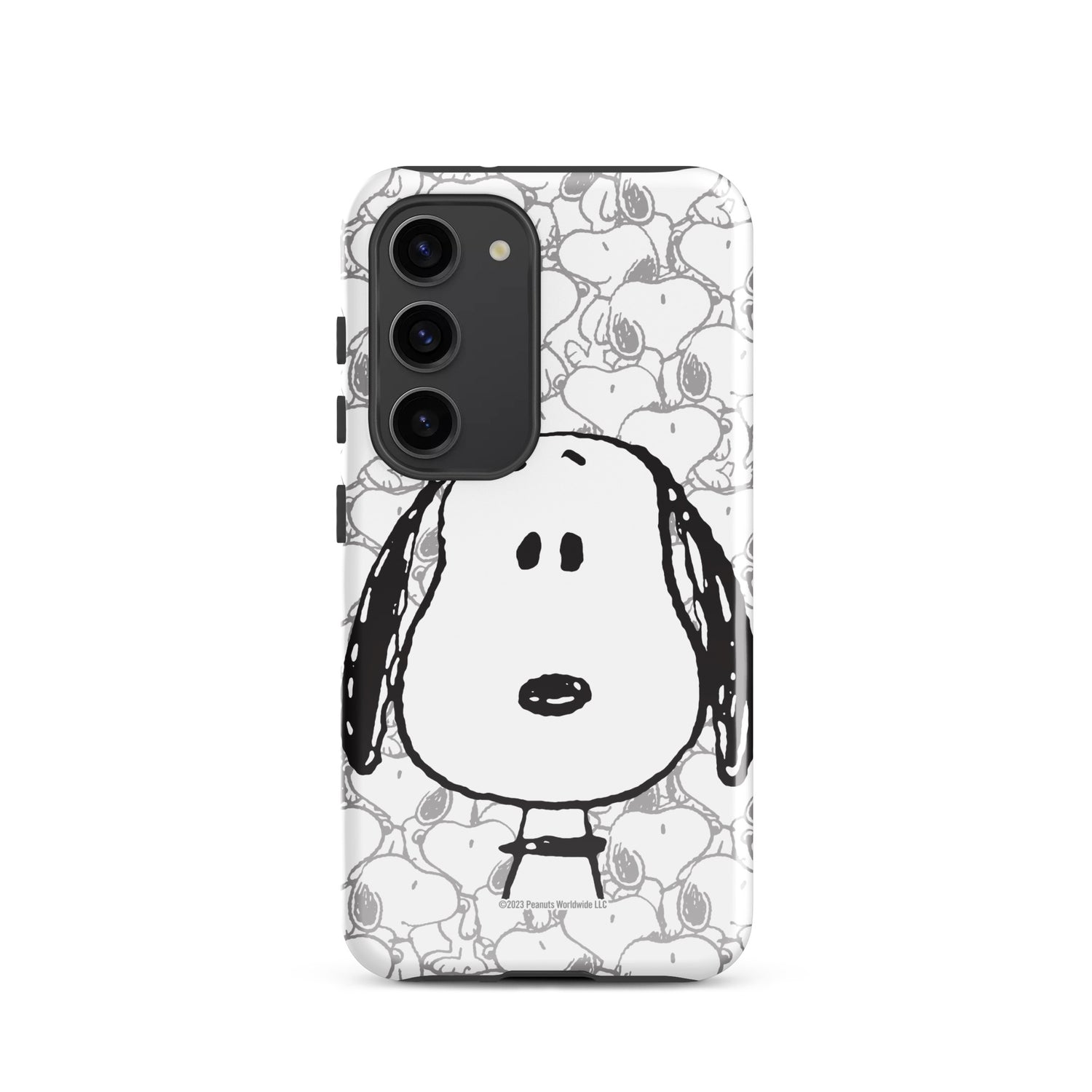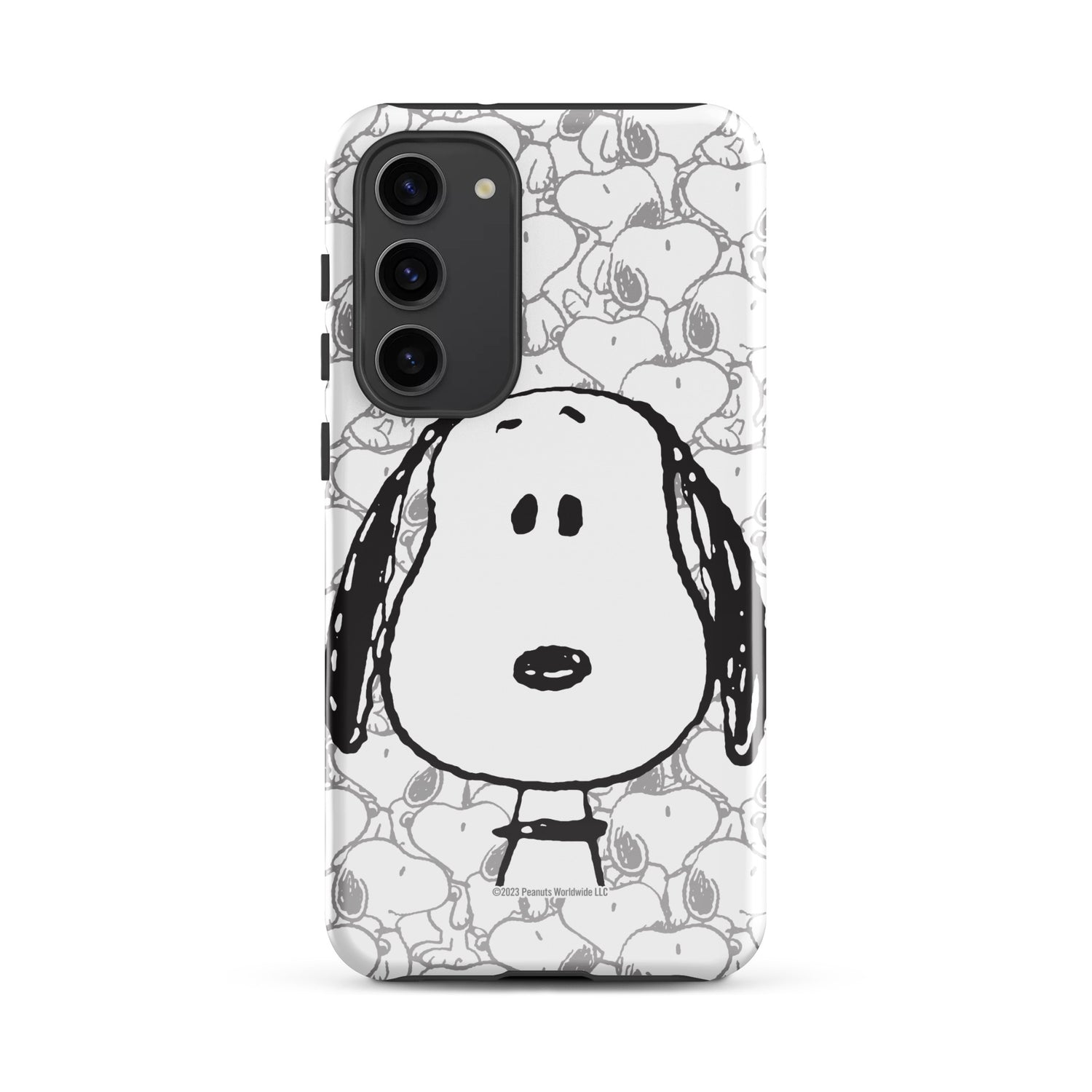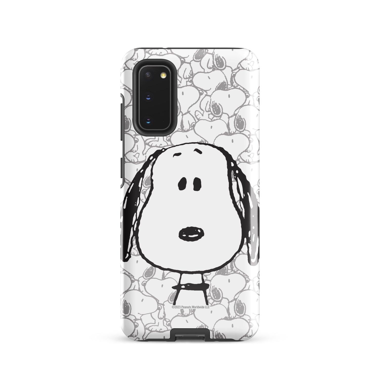 Introducing the Snoopy Samsung Tough Case – a whimsical tribute to everyone's favorite beagle, capturing the playful spirit and heartwarming moments of Snoopy in a delightful collage.