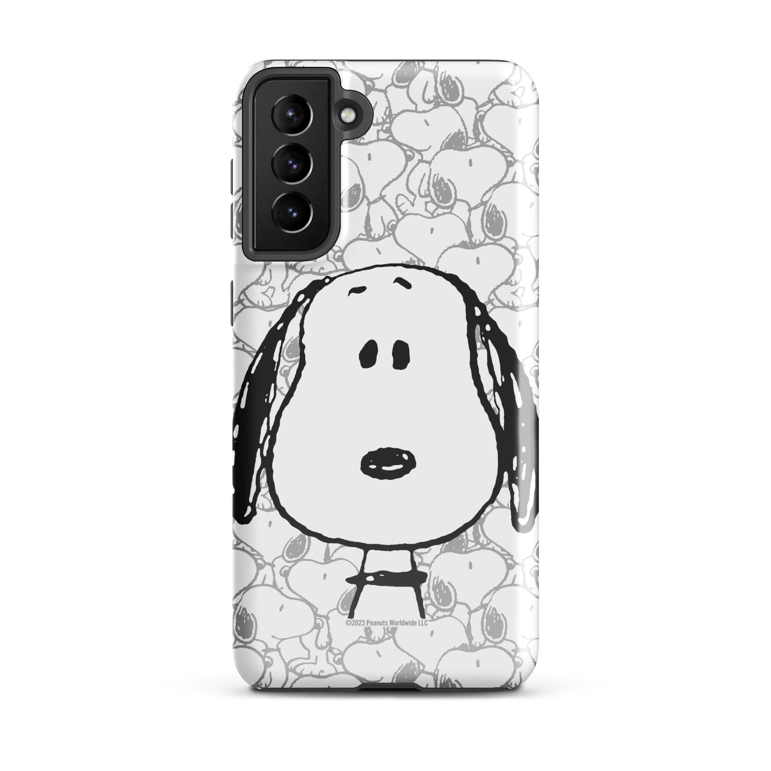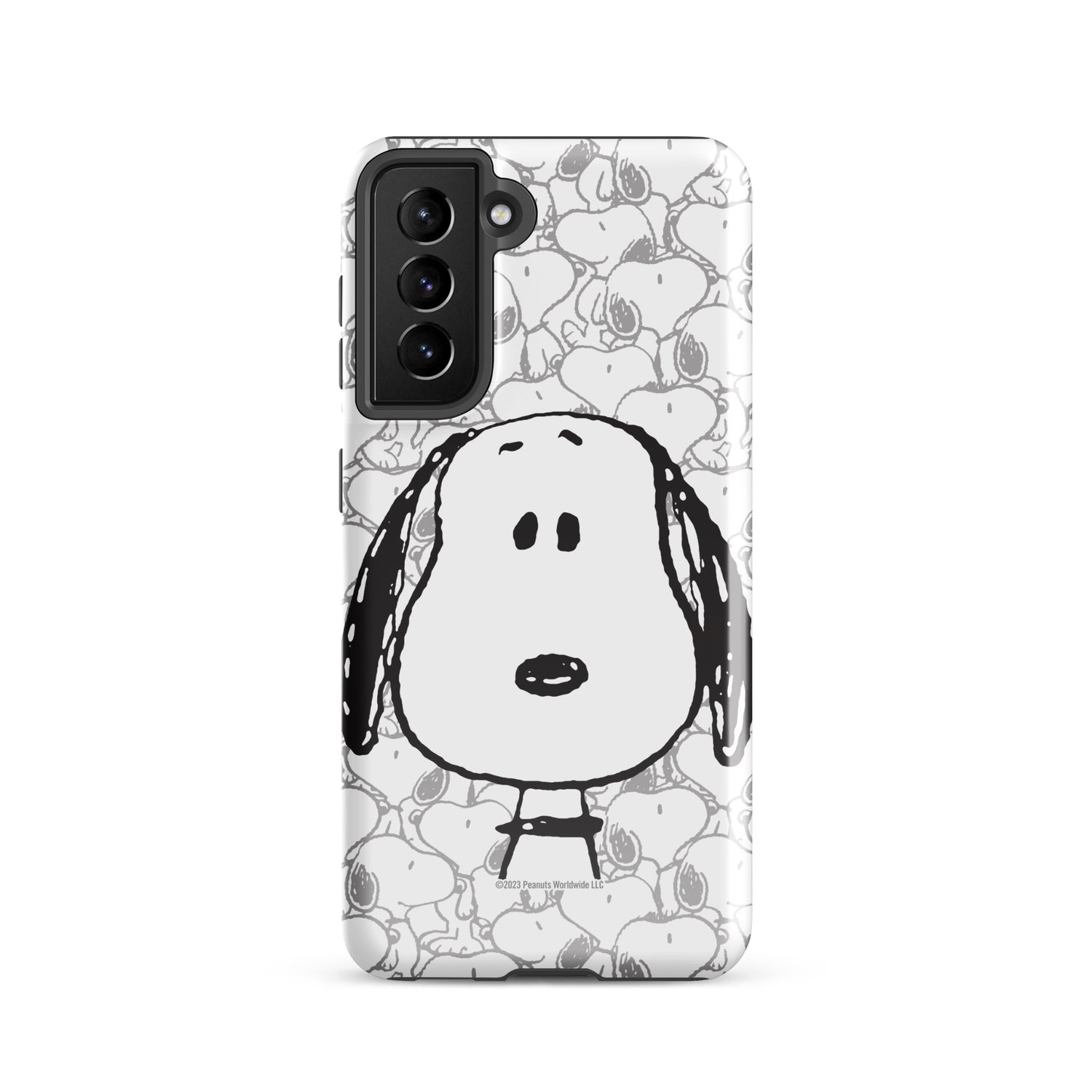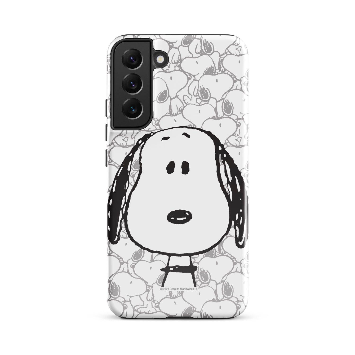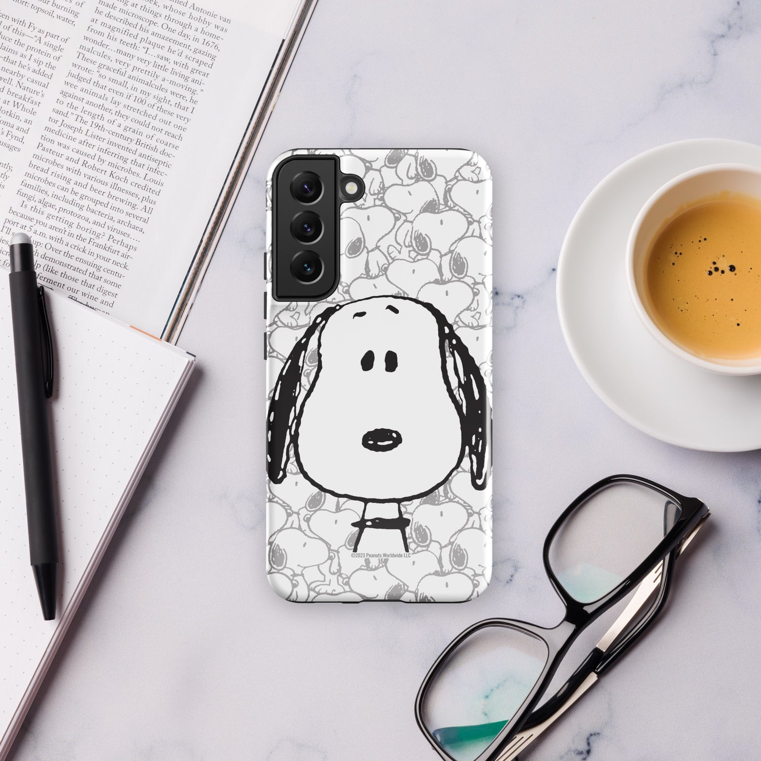 Introducing the Snoopy Samsung Tough Case – a whimsical tribute to everyone's favorite beagle, capturing the playful spirit and heartwarming moments of Snoopy in a delightful collage.