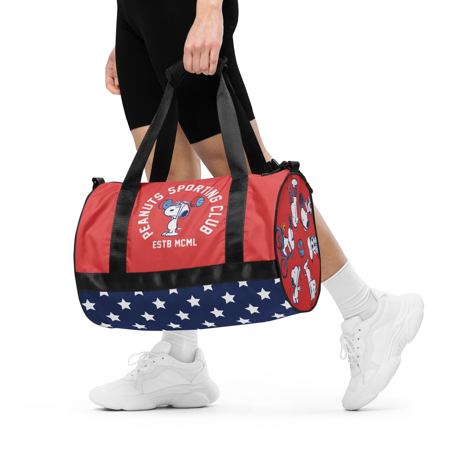 Step into the world of athletic adventures with the Snoopy Sports Club Gym Bag! Crafted with durable materials and adorned with vibrant Snoopy graphics, this bag is more than just a companion; it's a statement of your USA sporting spirit.