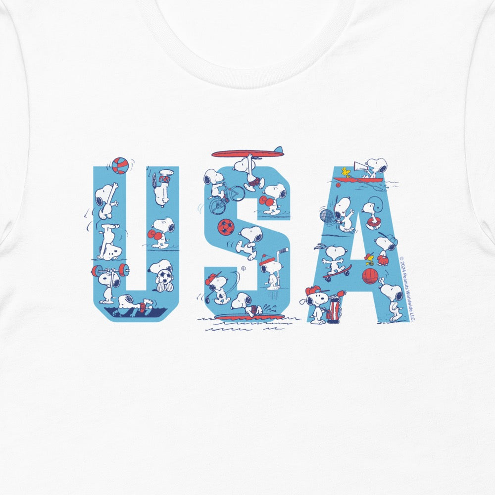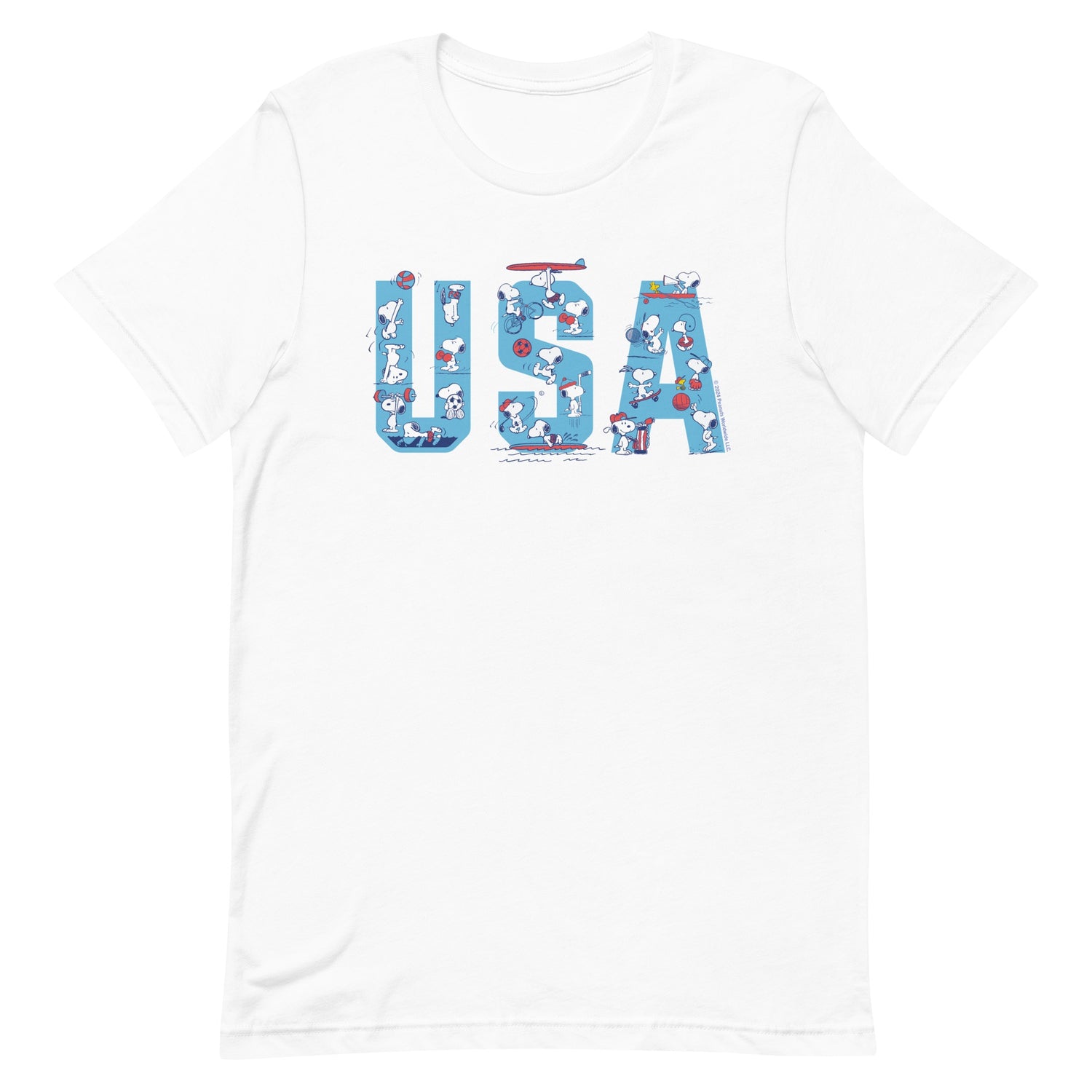 Embrace the timeless charm with our Snoopy USA Sports T-Shirt! Crafted with premium cotton blend fabric, this tee ensures ultimate comfort while showcasing your love for sports and Snoopy.