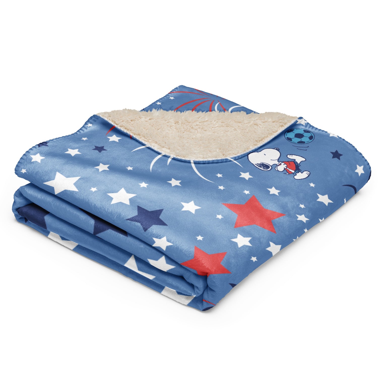 Experience cozy comfort and nostalgic charm with our Snoopy Sports and Stars Sherpa Blanket. Crafted with premium materials, this ultra-soft blanket features beloved Snoopy engaged in playful sports activities under a starry night sky.