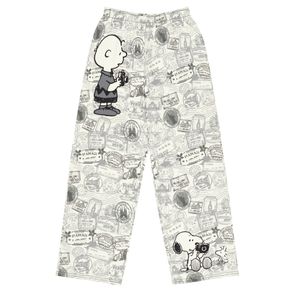 Travel the globe with Snoopy and the gang in the Peanuts Stamps Lounge Pants! Featuring a charming design that celebrates the worldwide adventures of your favorite Peanuts characters, these ultra-comfortable pants offer a relaxed fit and vintage-inspired feel. Whether you're exploring new places or just kicking back in comfort, these are a must-have for any Peanuts fan.