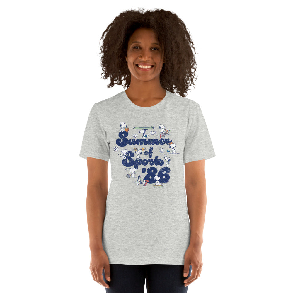 Celebrate the sunny days with the Peanuts Summer of Sports Adult T-Shirt! Featuring a vibrant design of Snoopy embracing his love for outdoor activities, this shirt is a must-have for fans who enjoy both classic comics and active lifestyles.