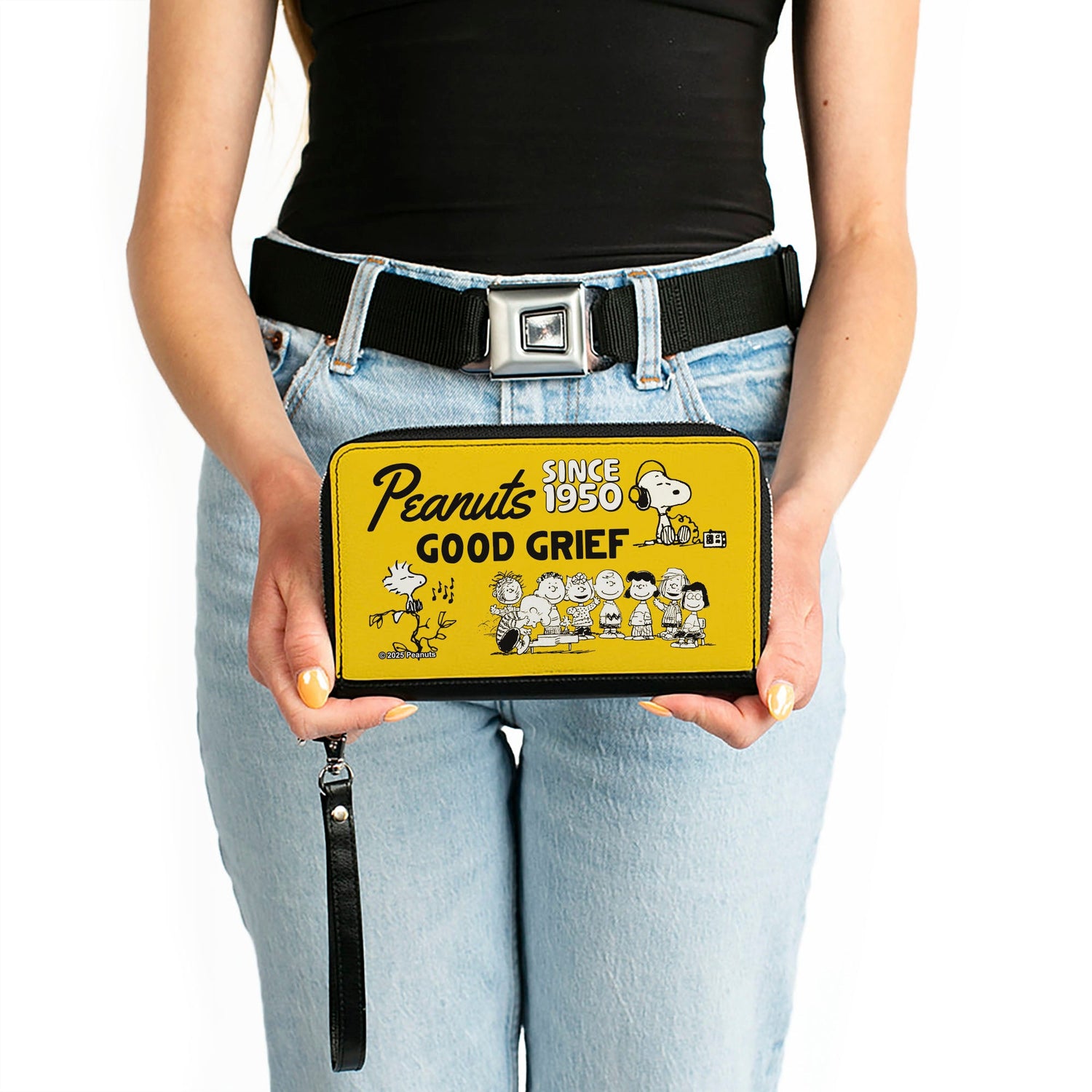 PU Zip Around Wallet Rectangle - PEANUTS Gang SINCE 1950 GOOD GRIEF Group Pose Yellow/Black