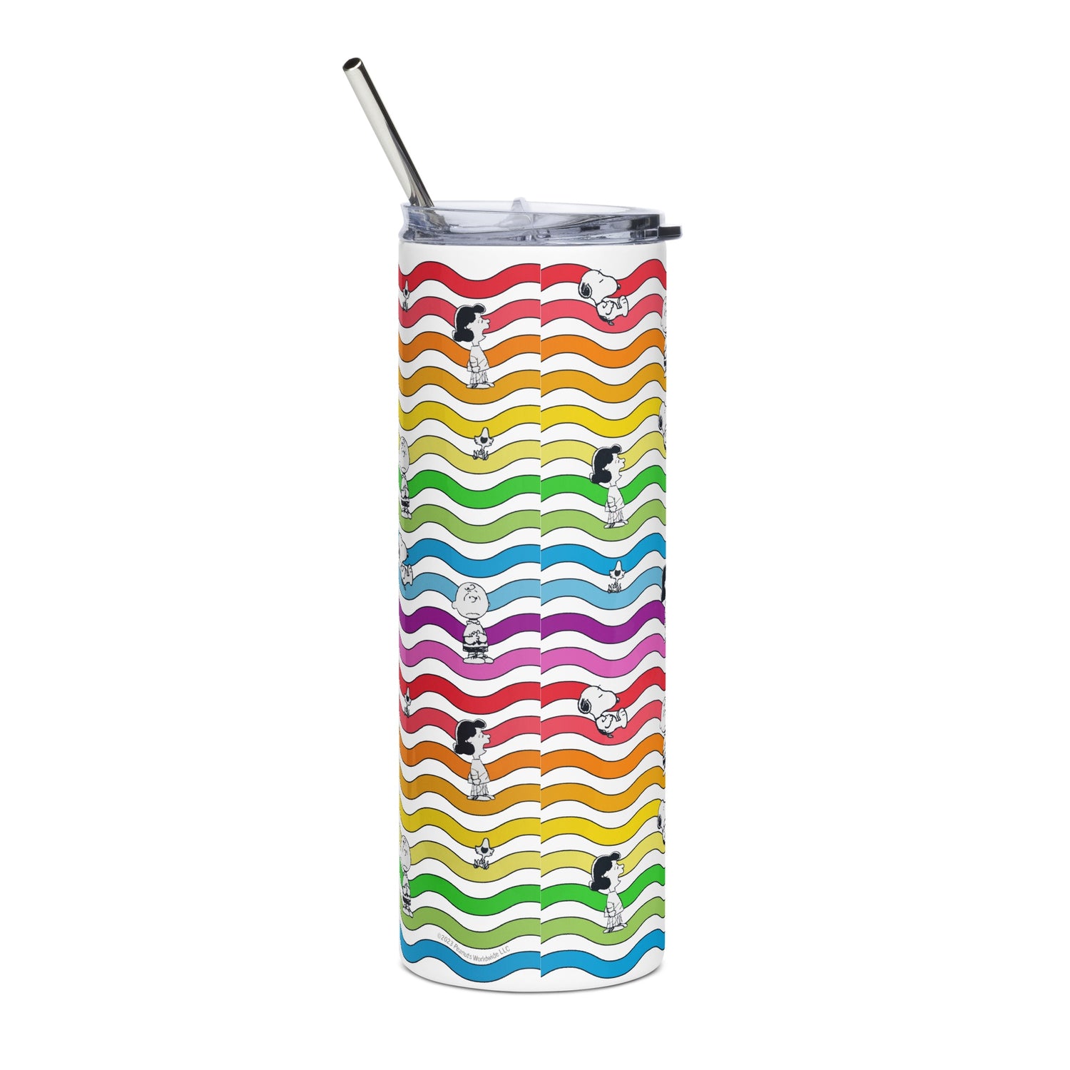 Indulge in a sip of childhood memories with the Rainbow Waves Skinny Tumbler. Order yours today and enjoy your favorite beverages in style, accompanied by the timeless charm of the Peanuts.