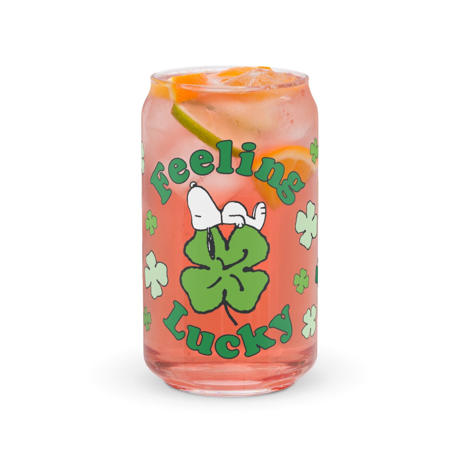 It's a green and glorious St. Patrick's Day with the Snoopy Feeling Lucky Can Glass! Snoopy's lounging with sprigs of four-leaf clovers, ready to make every sip magical. This tumbler, crafted for durability, ensures your drinks stay cool and refreshing. Whether you're marching in a parade or just lounging at home, let Snoopy's "Feeling Lucky" mantra guide your St. Patrick's Day festivities.