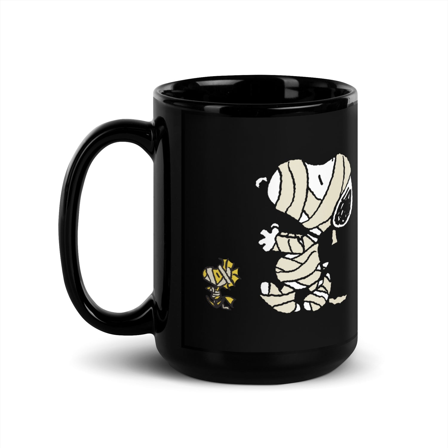 Start your day the Peanuts way! Enjoy a hot cup of coffee or tea in this Snoopy & Woodstock Mummy Black Mug.